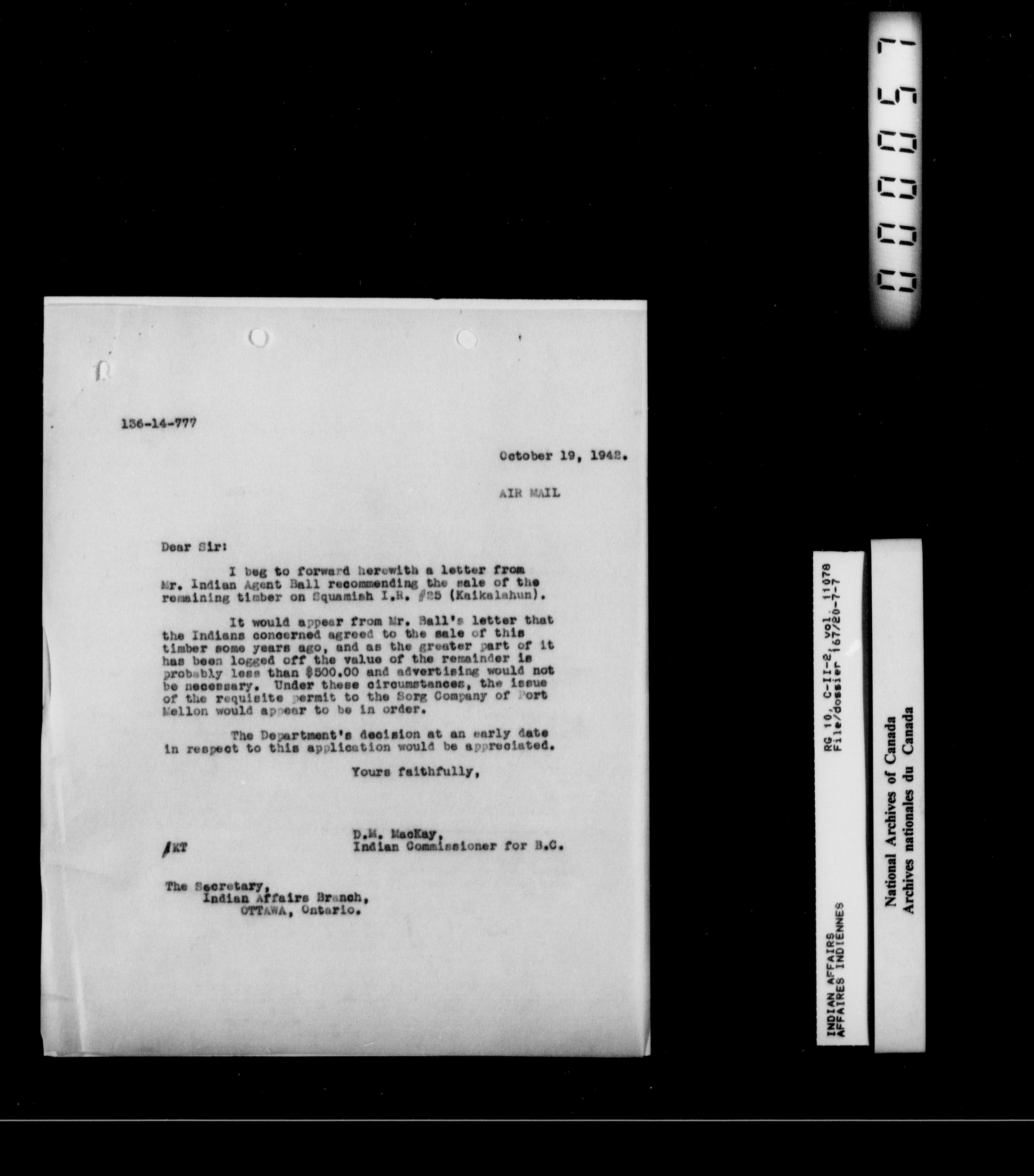 Indian Commissioner for British Columbia (1887-1964) - 16104