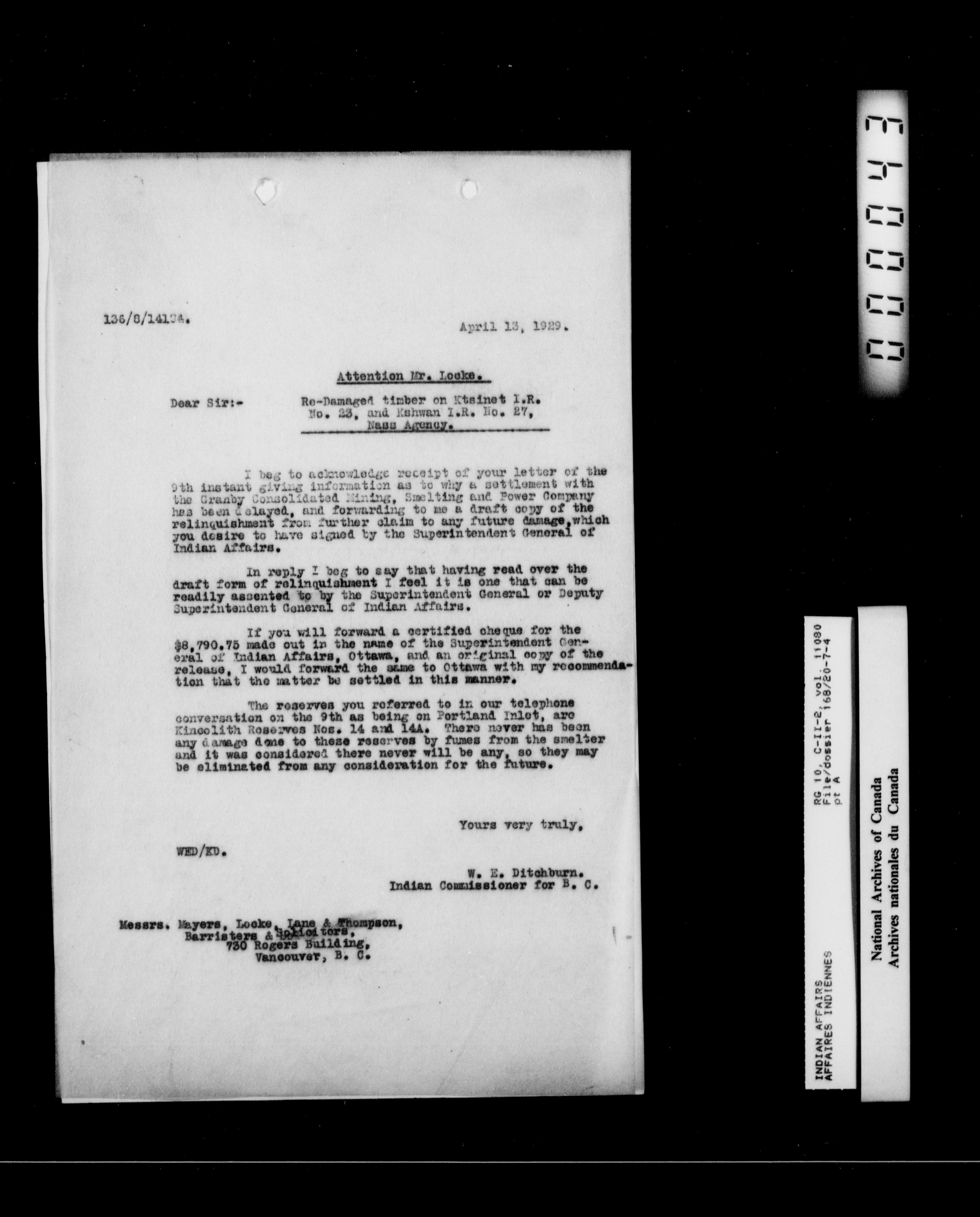 Indian Commissioner for British Columbia (1887-1964) - 16105
