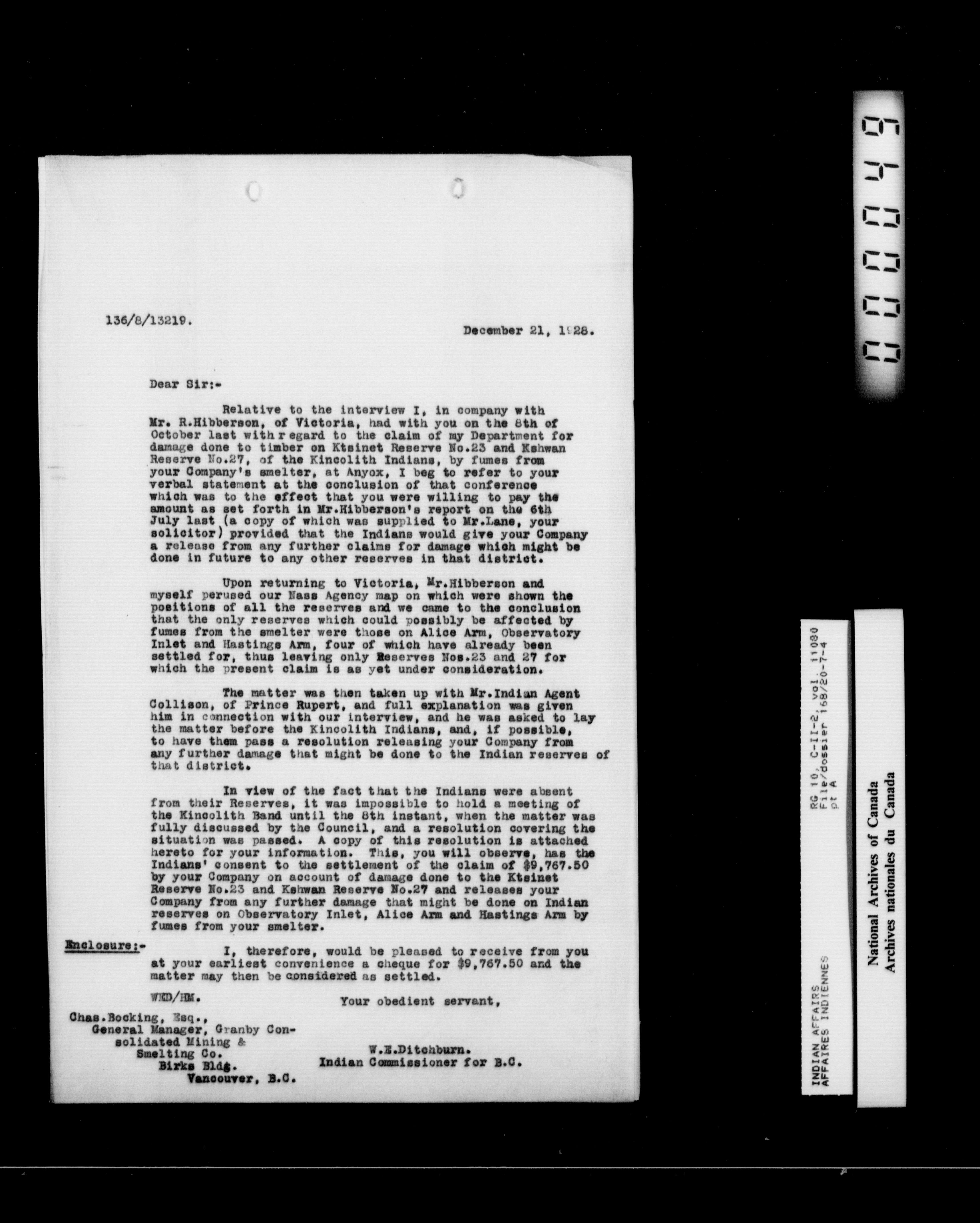 Indian Commissioner for British Columbia (1887-1964) - 16105