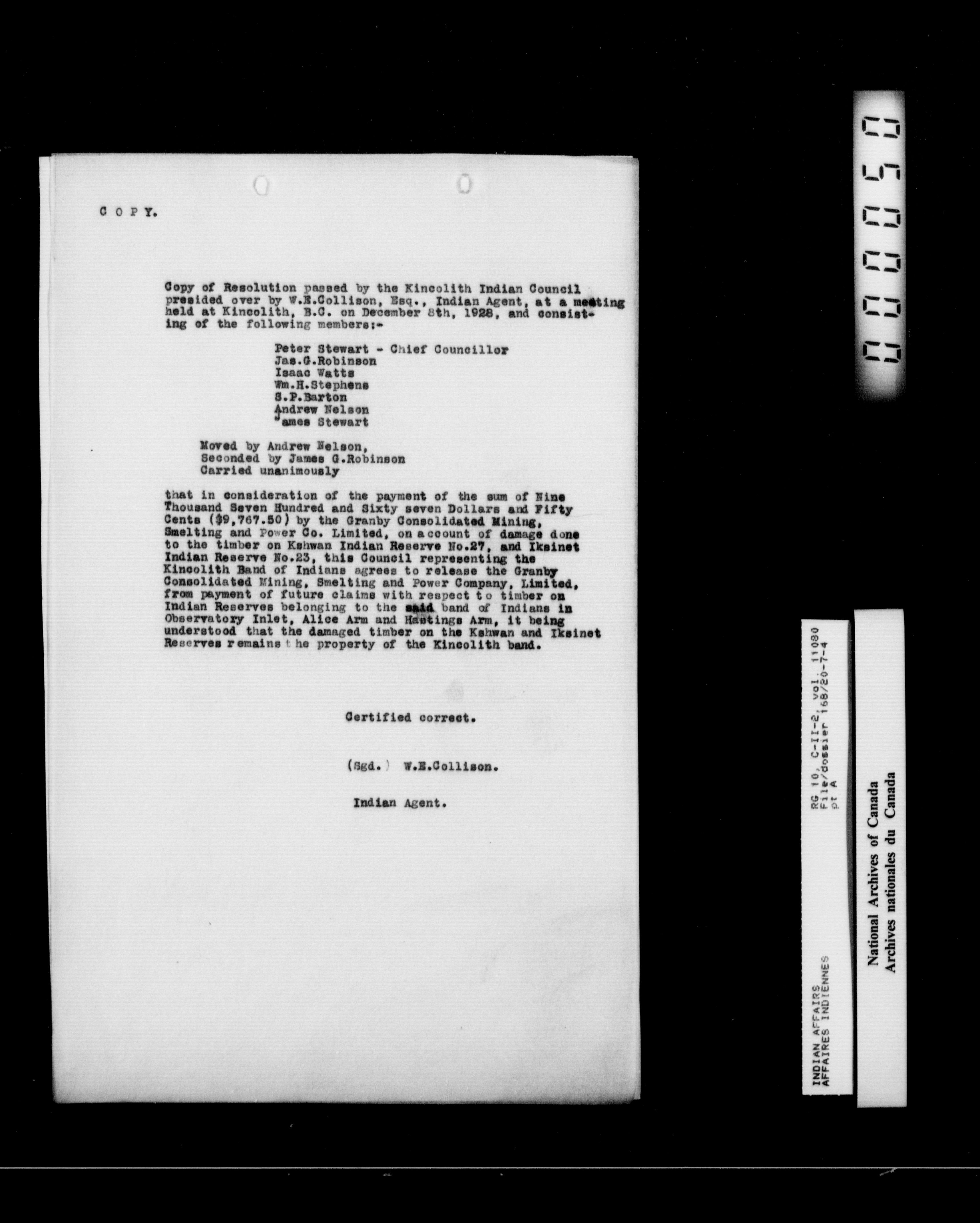 Indian Commissioner for British Columbia (1887-1964) - 16105