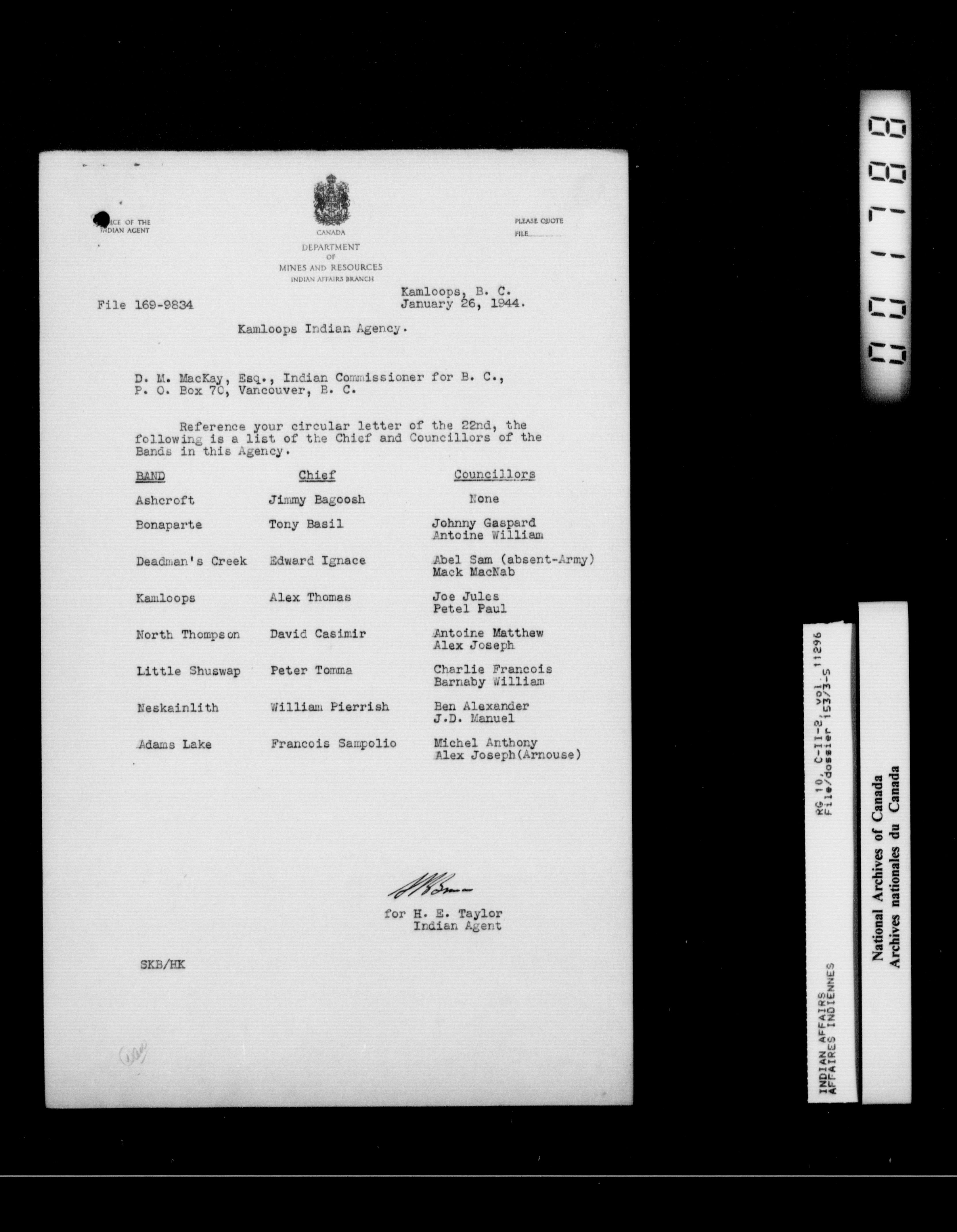 Indian Commissioner for British Columbia (1887-1964) - 16109