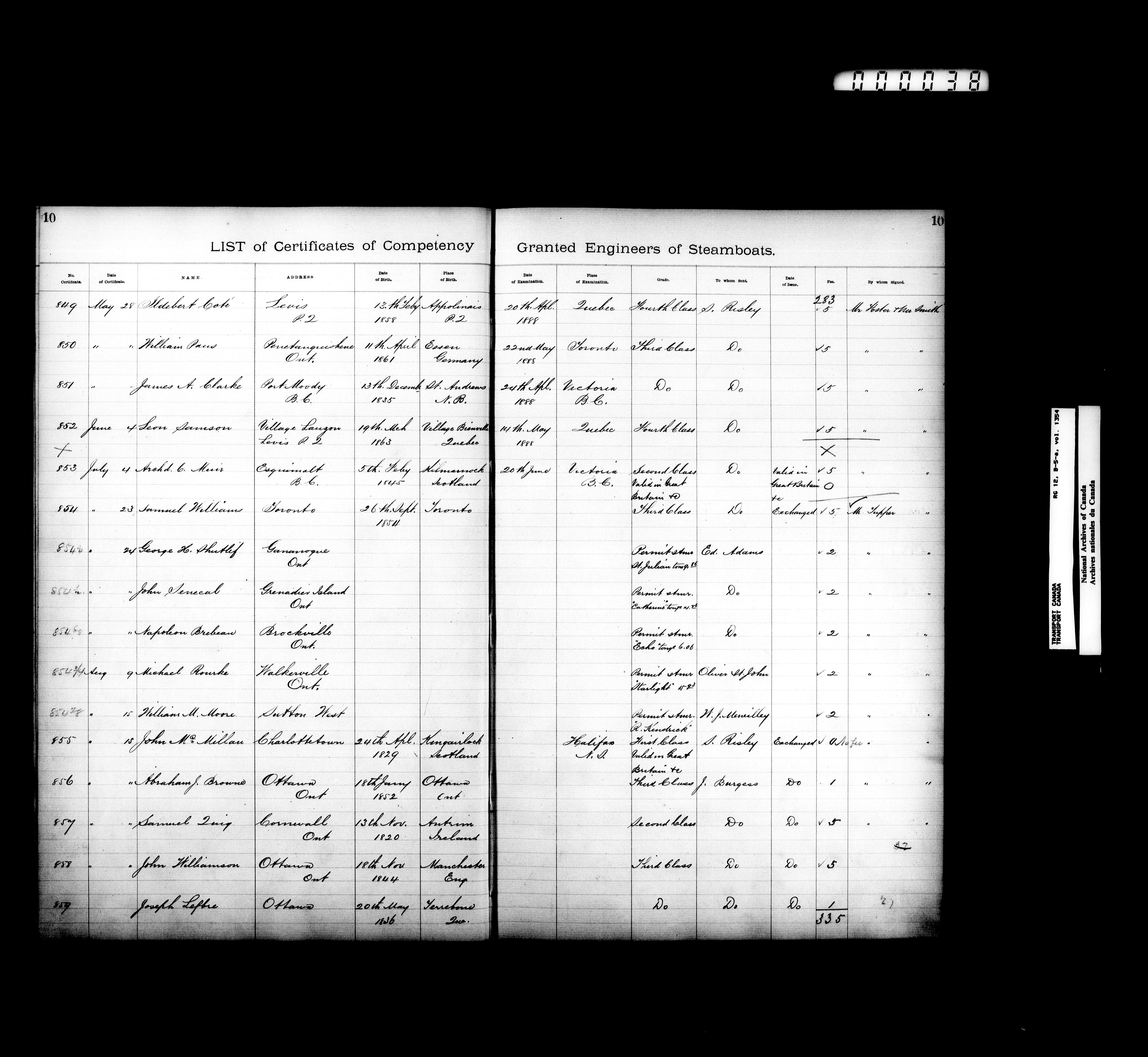 Department of Transport: Registers of marine certificates - 16131