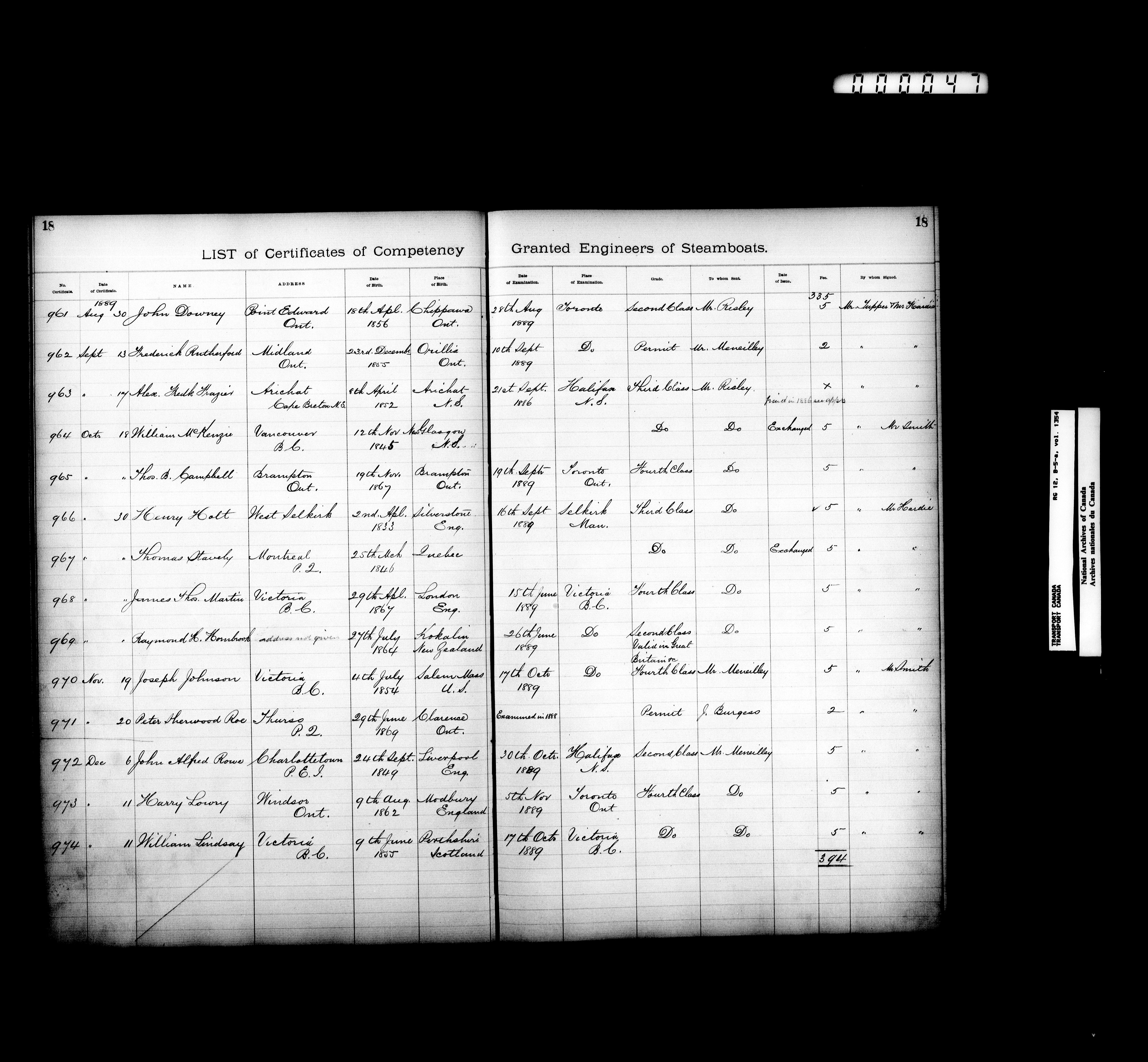 Department of Transport: Registers of marine certificates - 16131