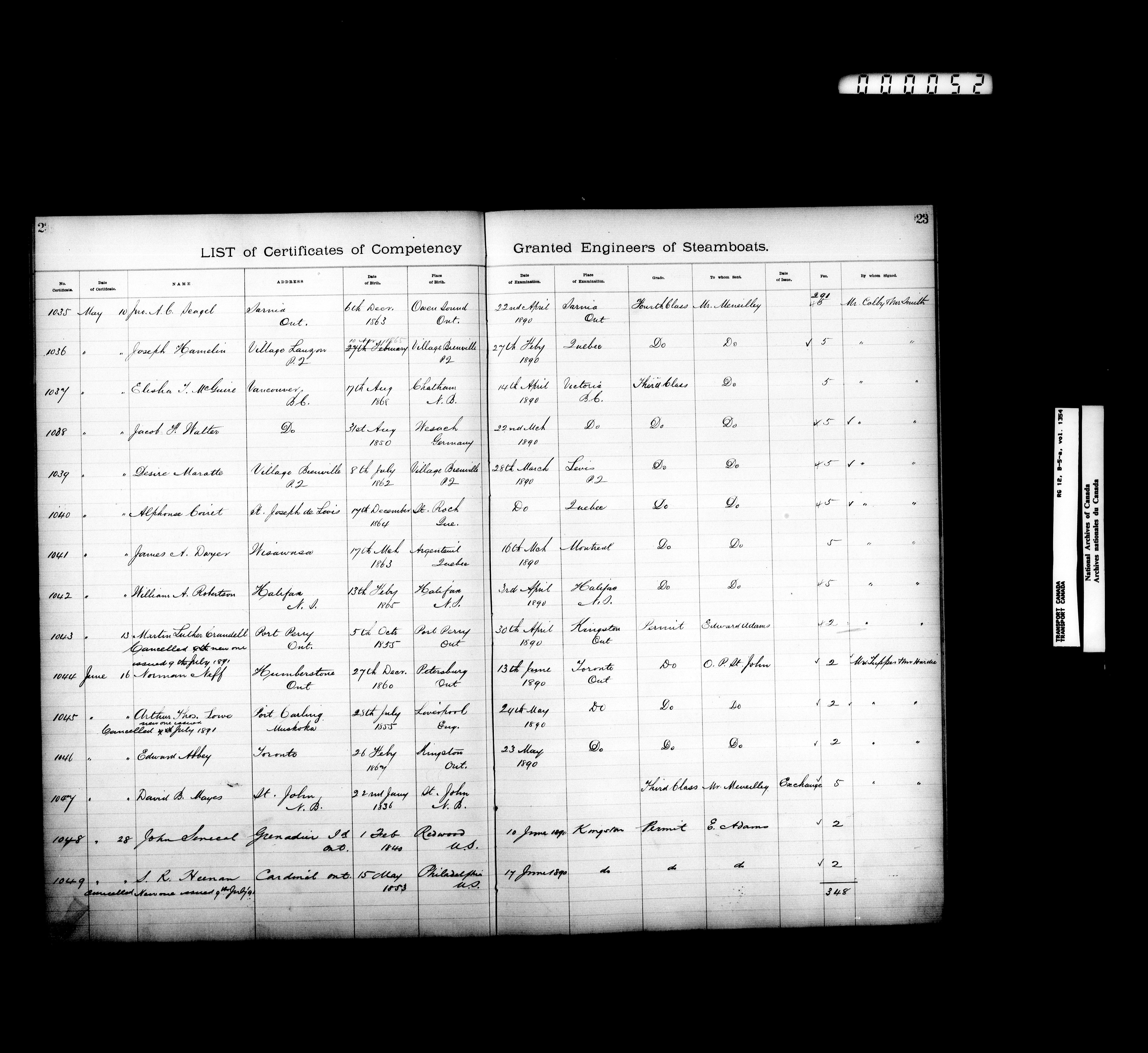 Department of Transport: Registers of marine certificates - 16131