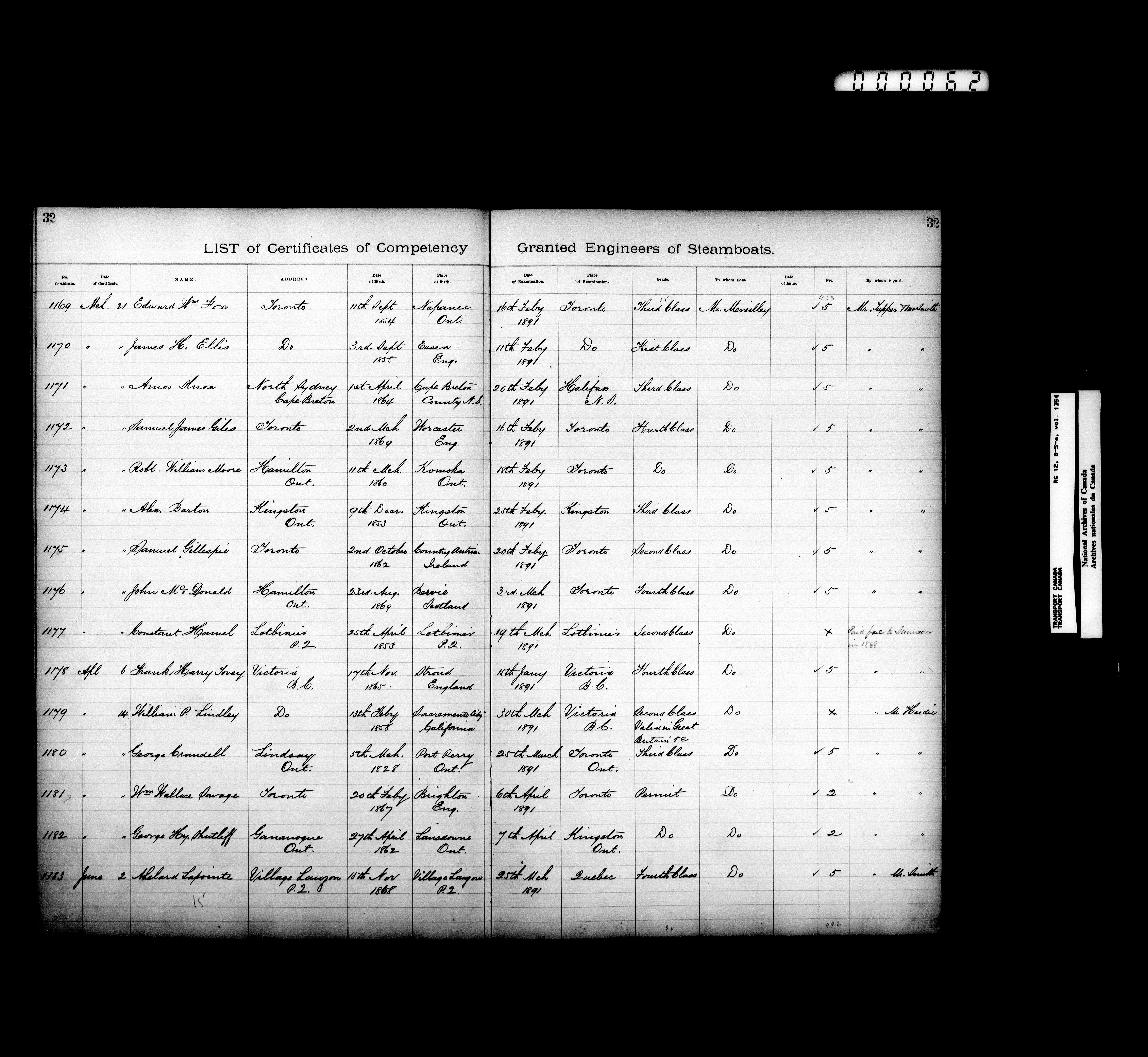 Department of Transport: Registers of marine certificates - 16131