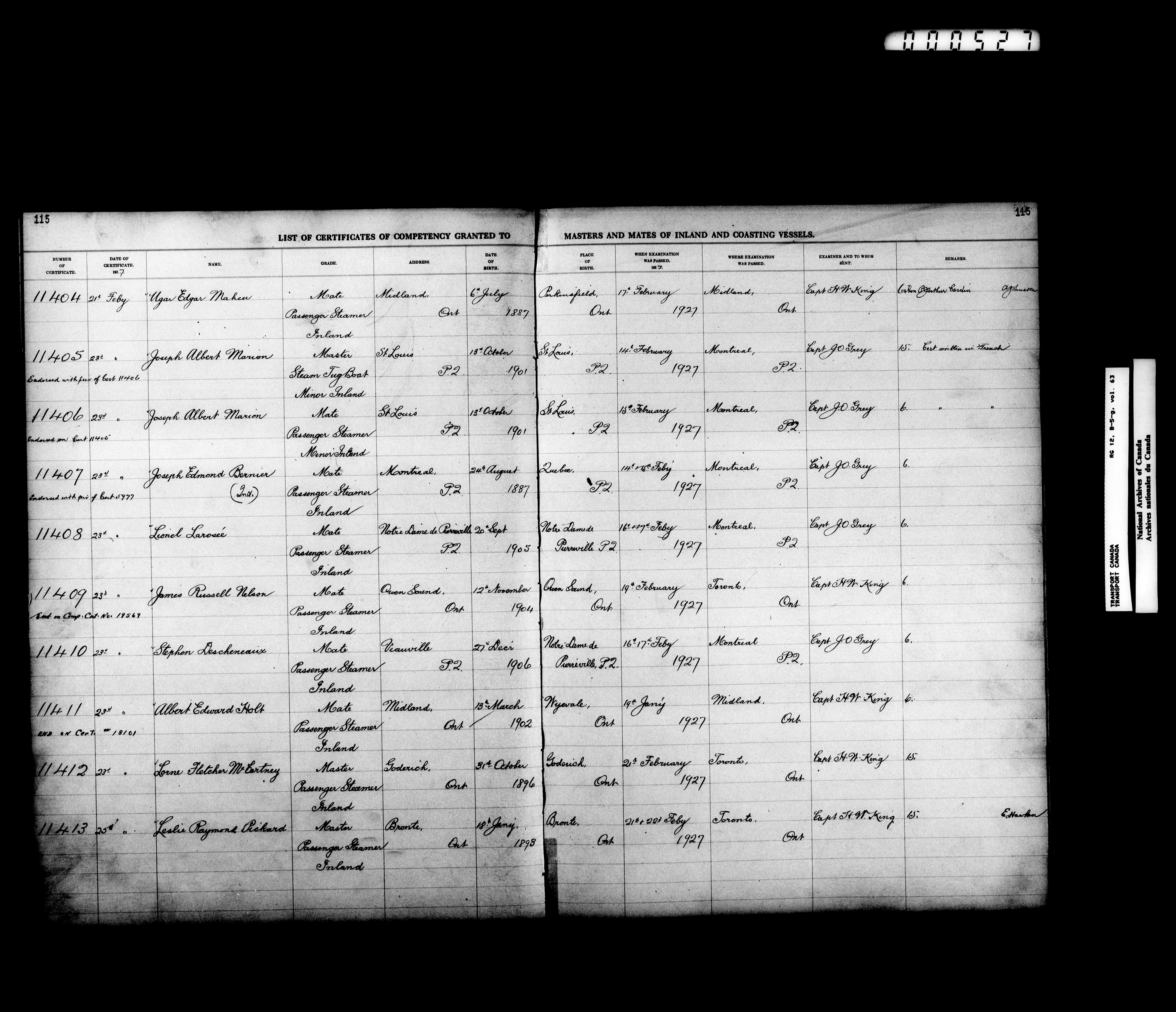 Department of Transport: Registers of marine certificates - 16136