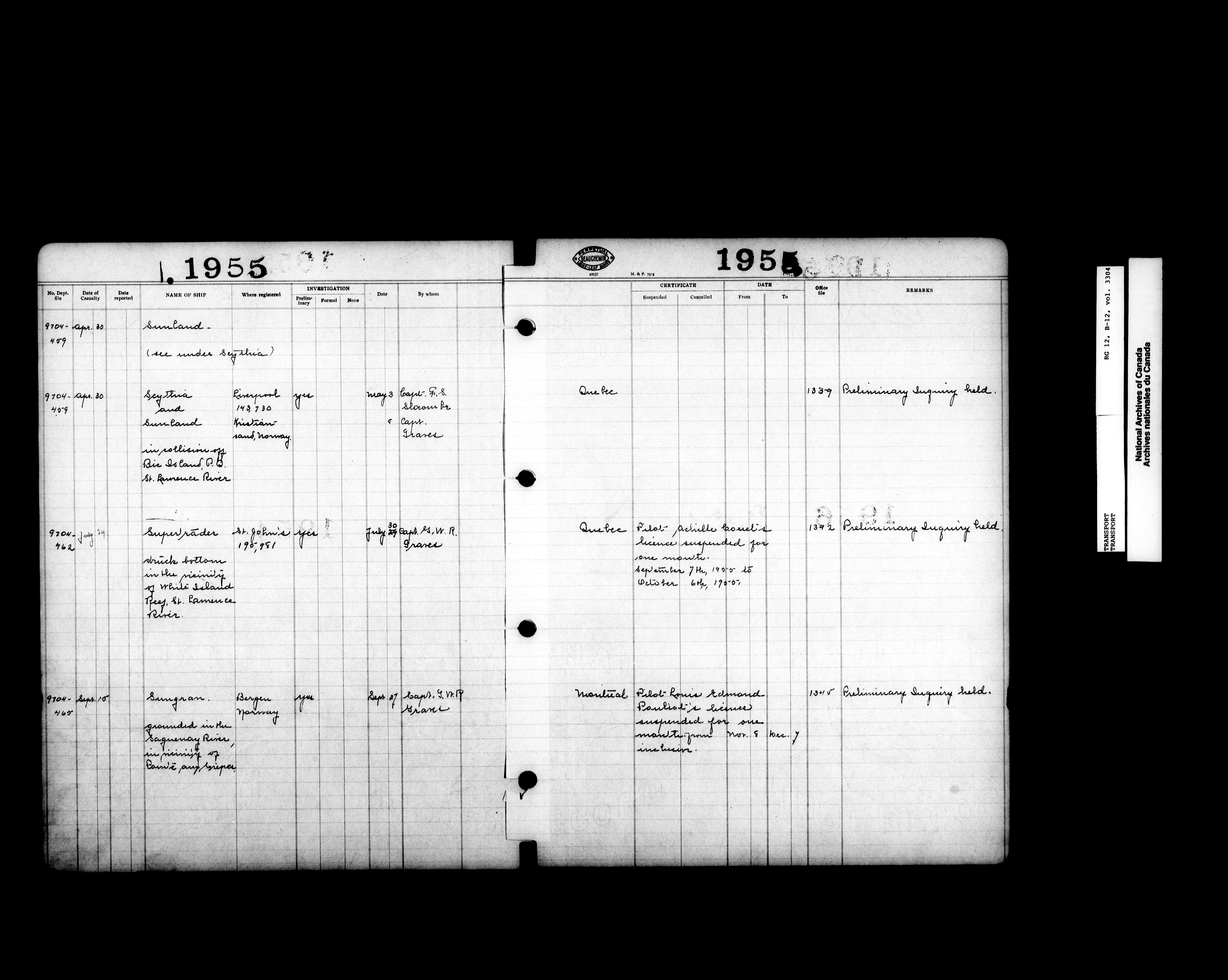 Register of Investigation into Wrecks 1911-1961 - 16143