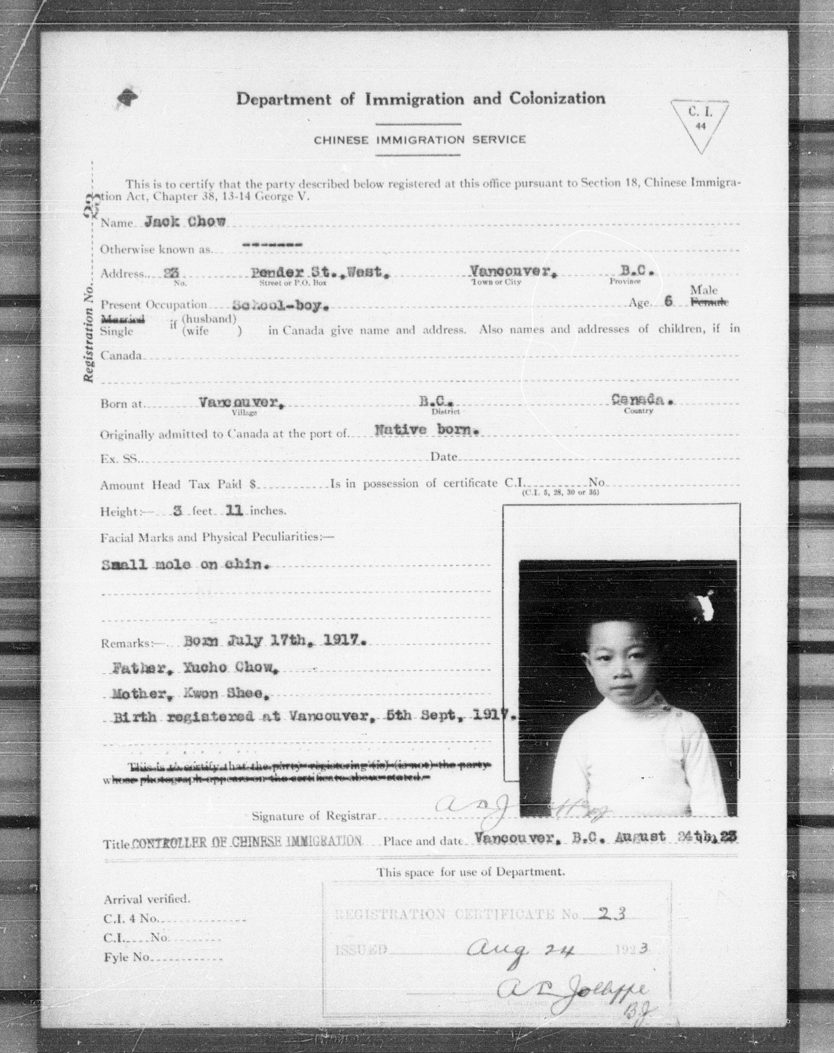 Chinese C.I. 44 forms and index cards of the Immigration Program (1923-1946)