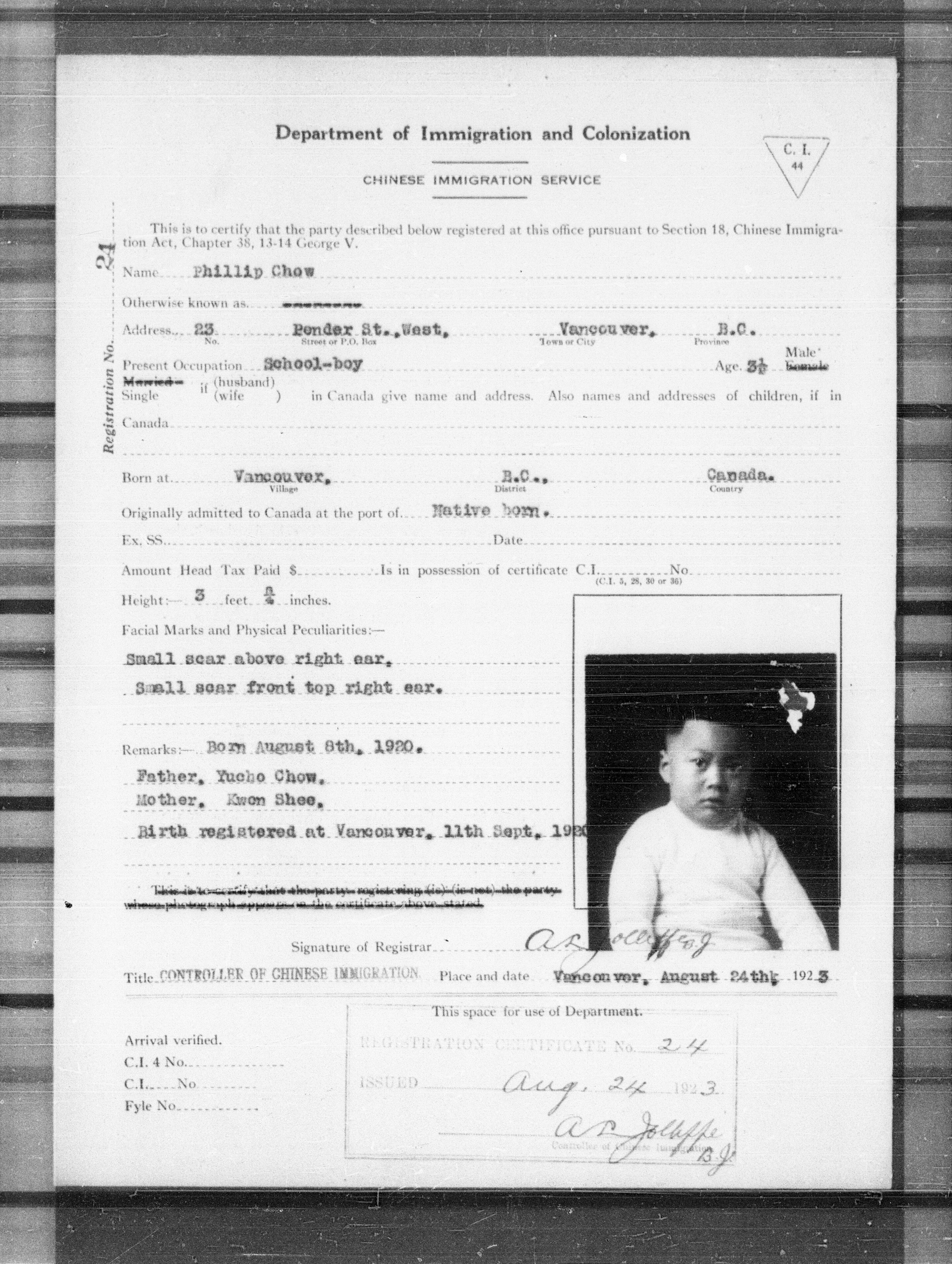 Chinese C.I. 44 forms and index cards of the Immigration Program (1923-1946)