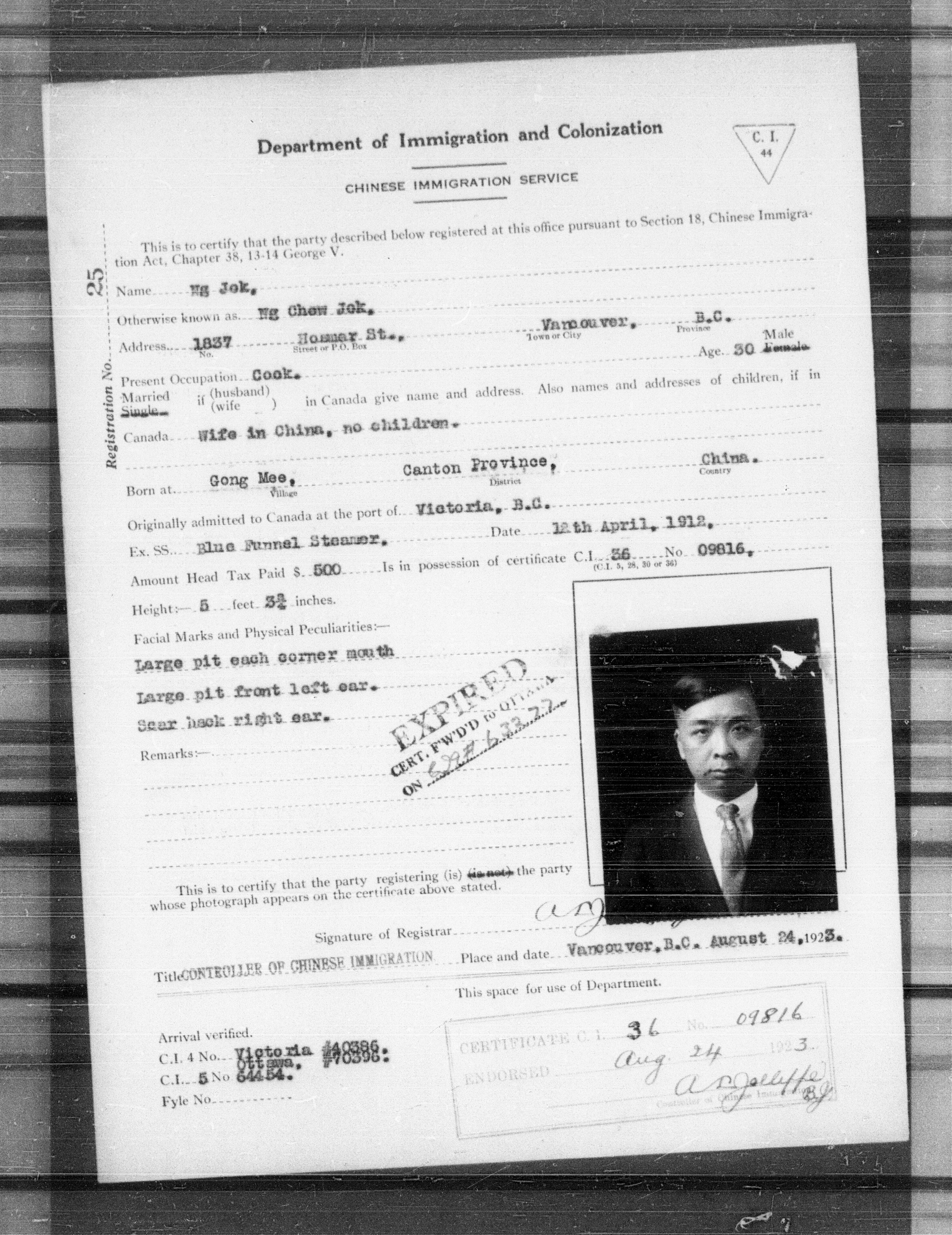 Chinese C.I. 44 forms and index cards of the Immigration Program (1923-1946)