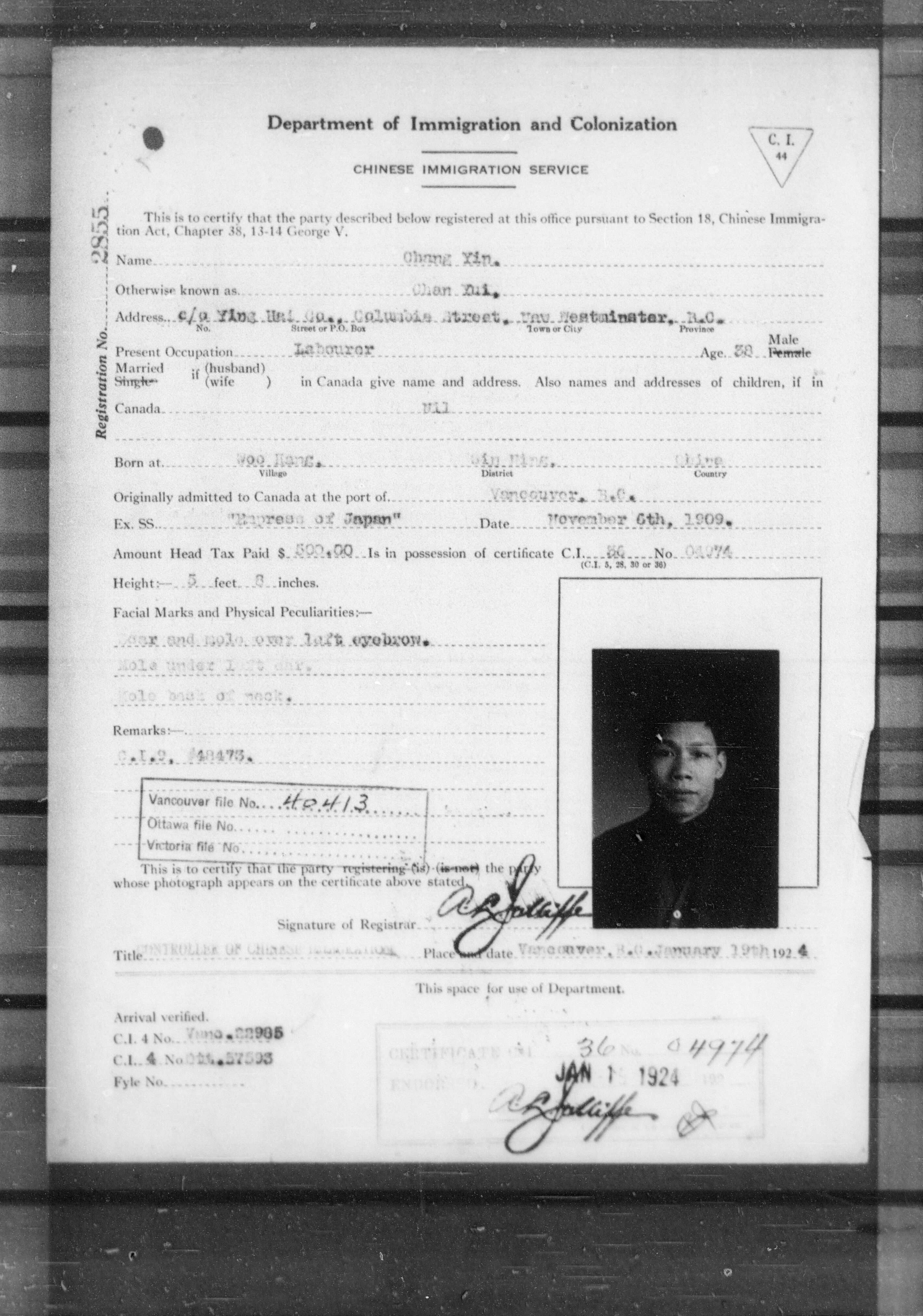 Chinese C.I. 44 forms and index cards of the Immigration Program (1923-1946)