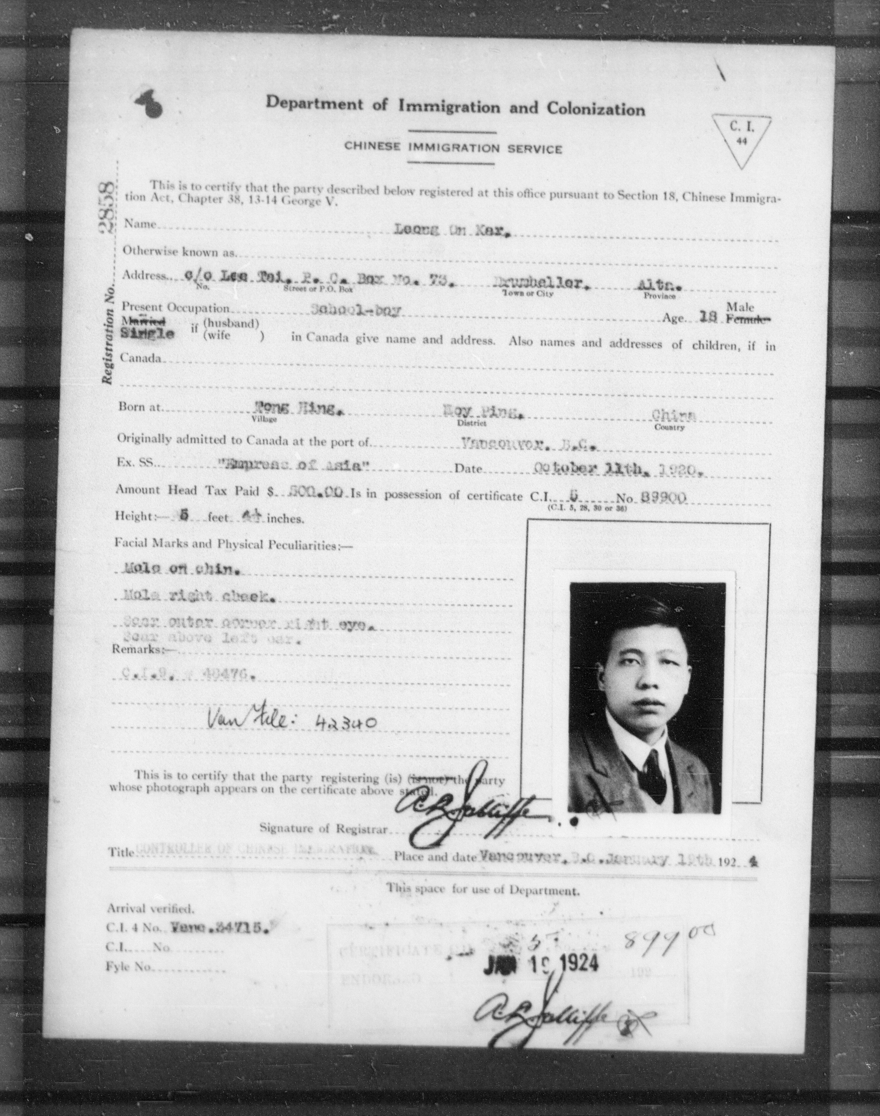 Chinese C.I. 44 forms and index cards of the Immigration Program (1923-1946)
