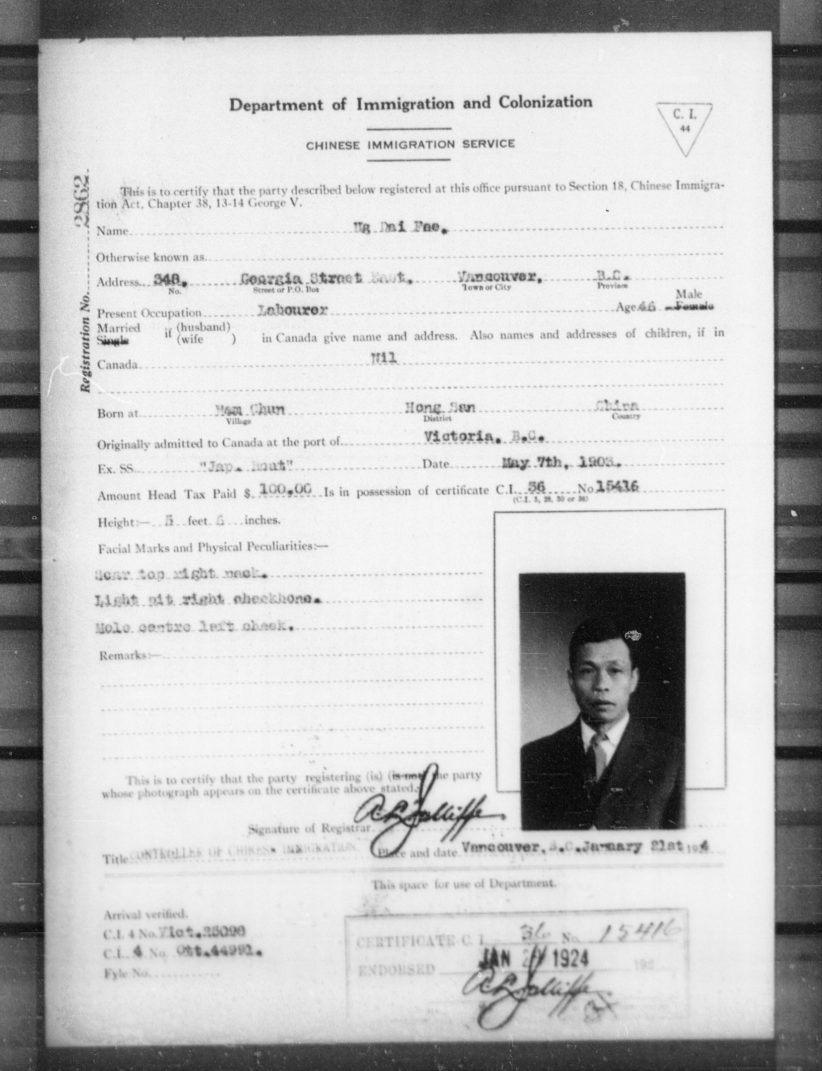 Chinese C.I. 44 forms and index cards of the Immigration Program (1923-1946)