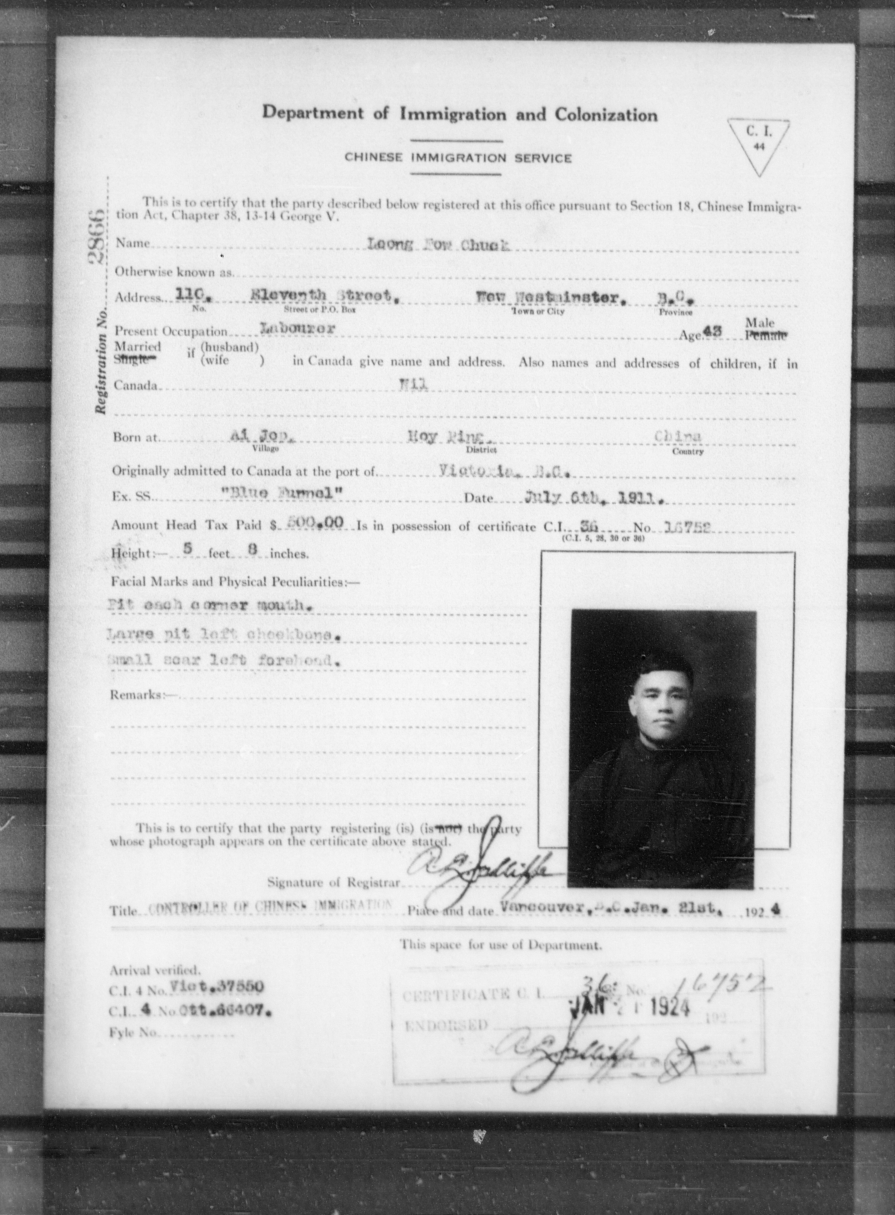 Chinese C.I. 44 forms and index cards of the Immigration Program (1923-1946)