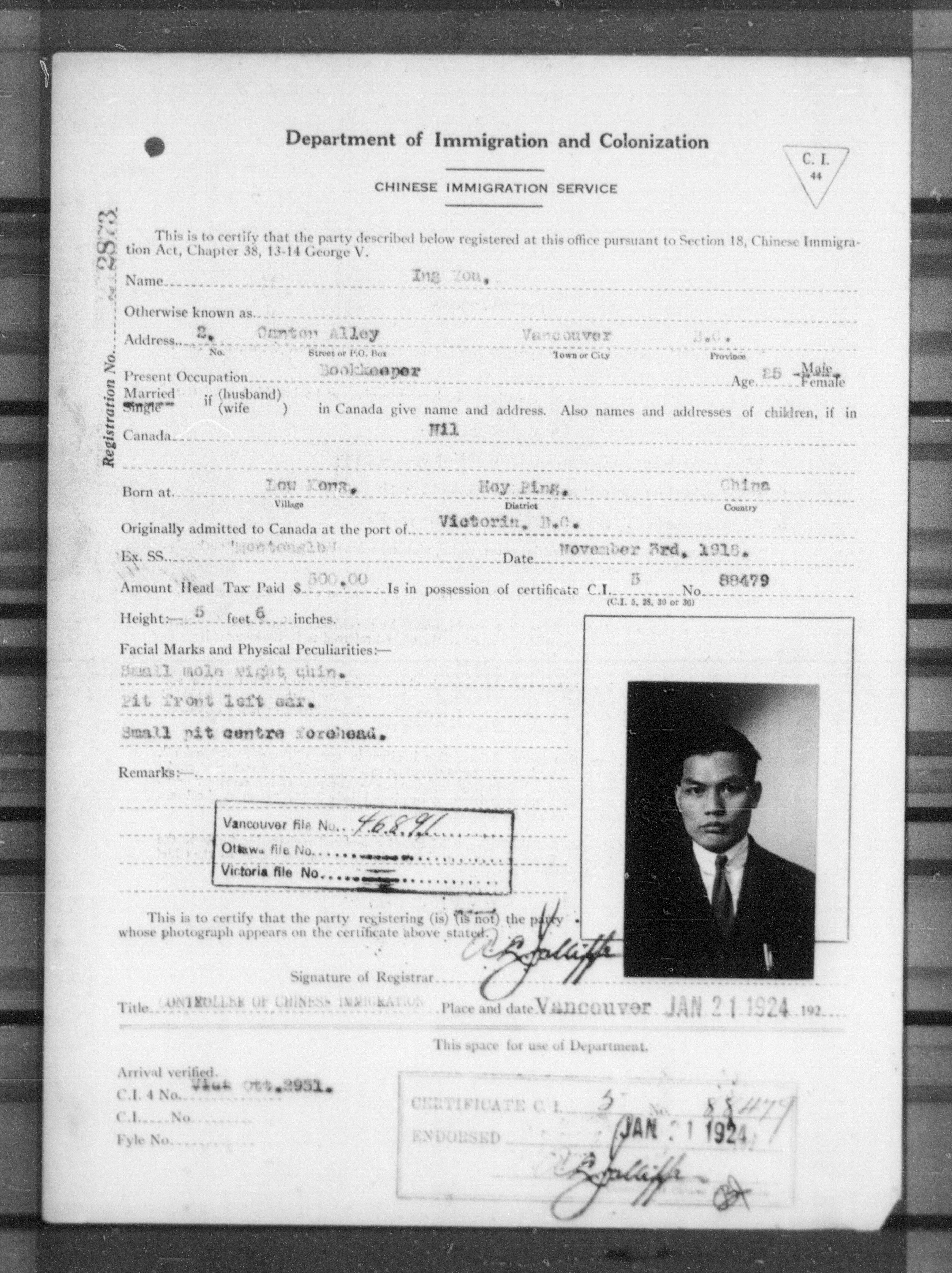 Chinese C.I. 44 forms and index cards of the Immigration Program (1923-1946)