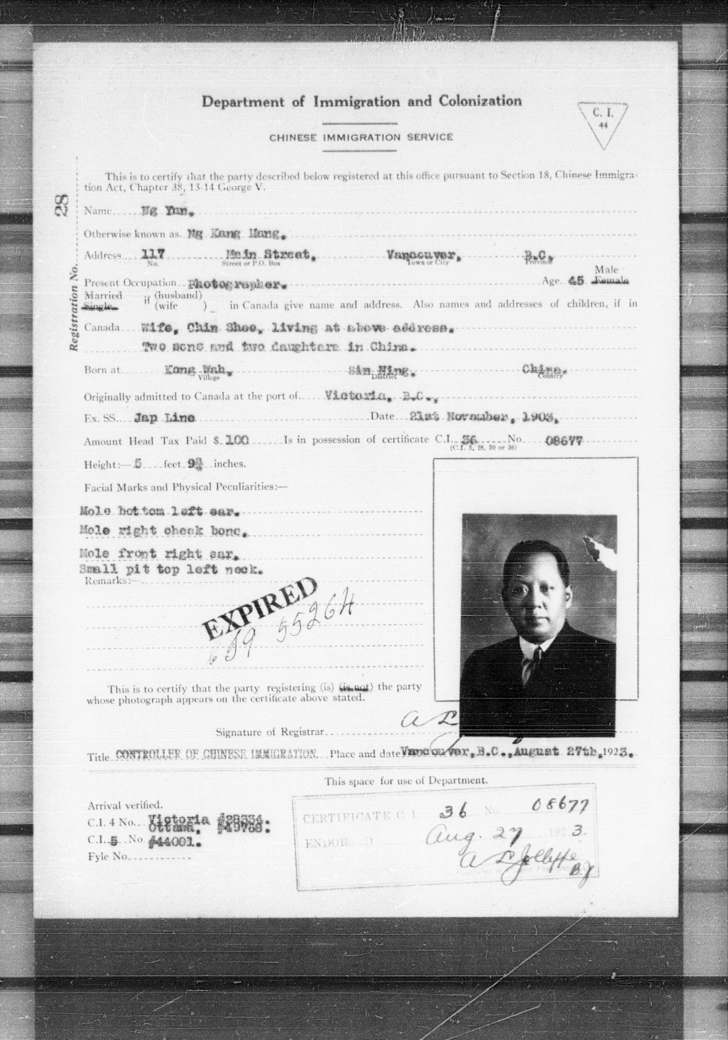 Chinese C.I. 44 forms and index cards of the Immigration Program (1923-1946)