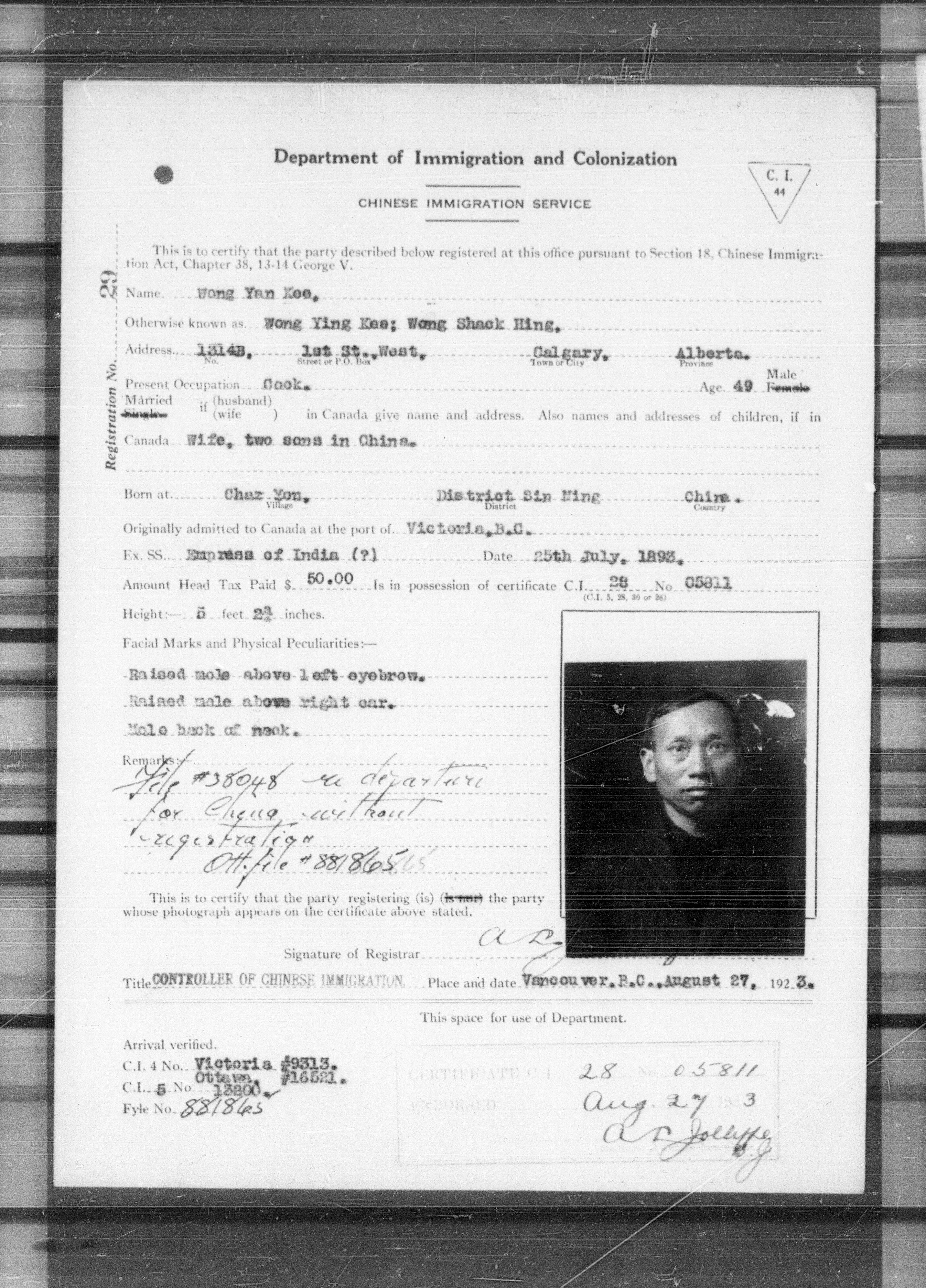 Chinese C.I. 44 forms and index cards of the Immigration Program (1923-1946)