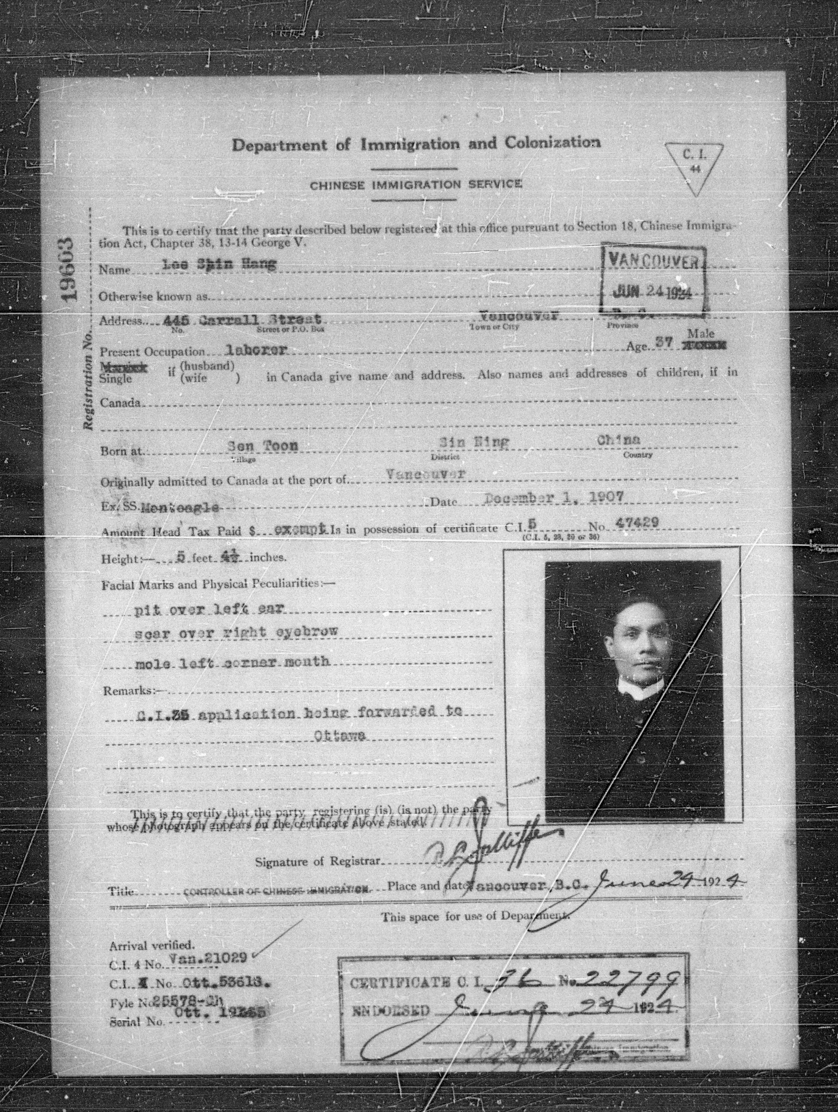 Chinese C.I. 44 forms and index cards of the Immigration Program (1923-1946) - T-16171