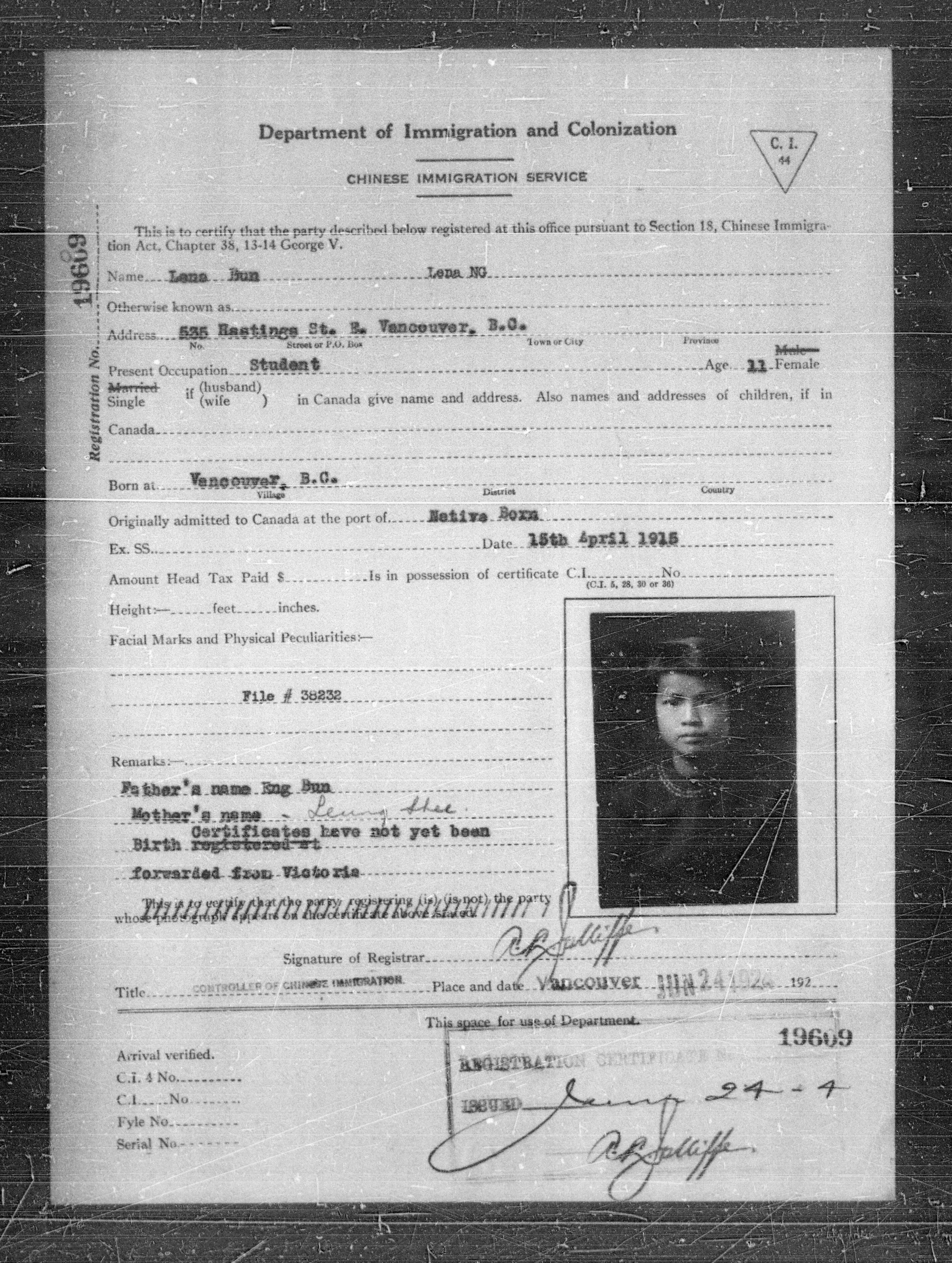 Chinese C.I. 44 forms and index cards of the Immigration Program (1923-1946) - T-16171