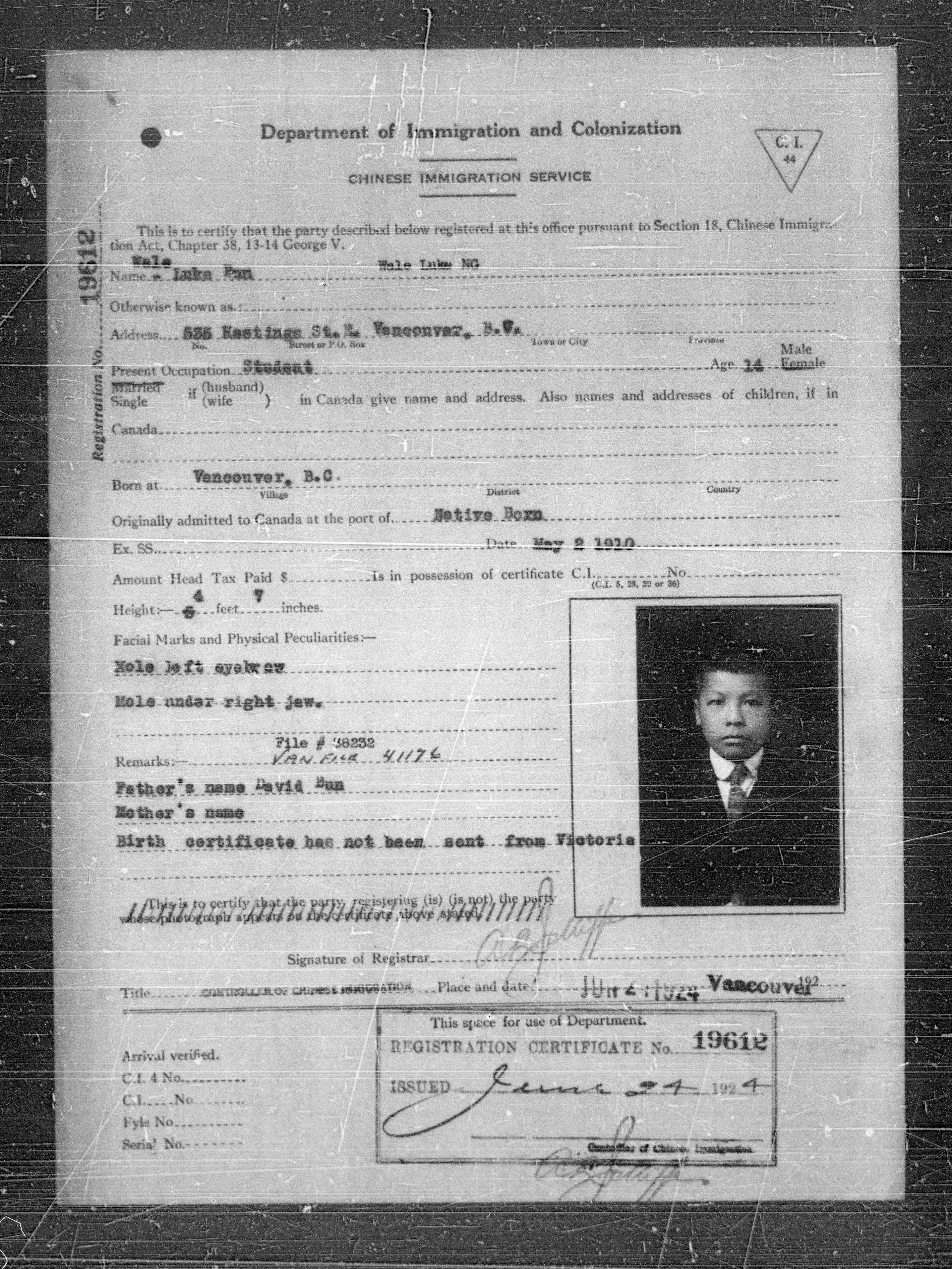 Chinese C.I. 44 forms and index cards of the Immigration Program (1923-1946) - T-16171