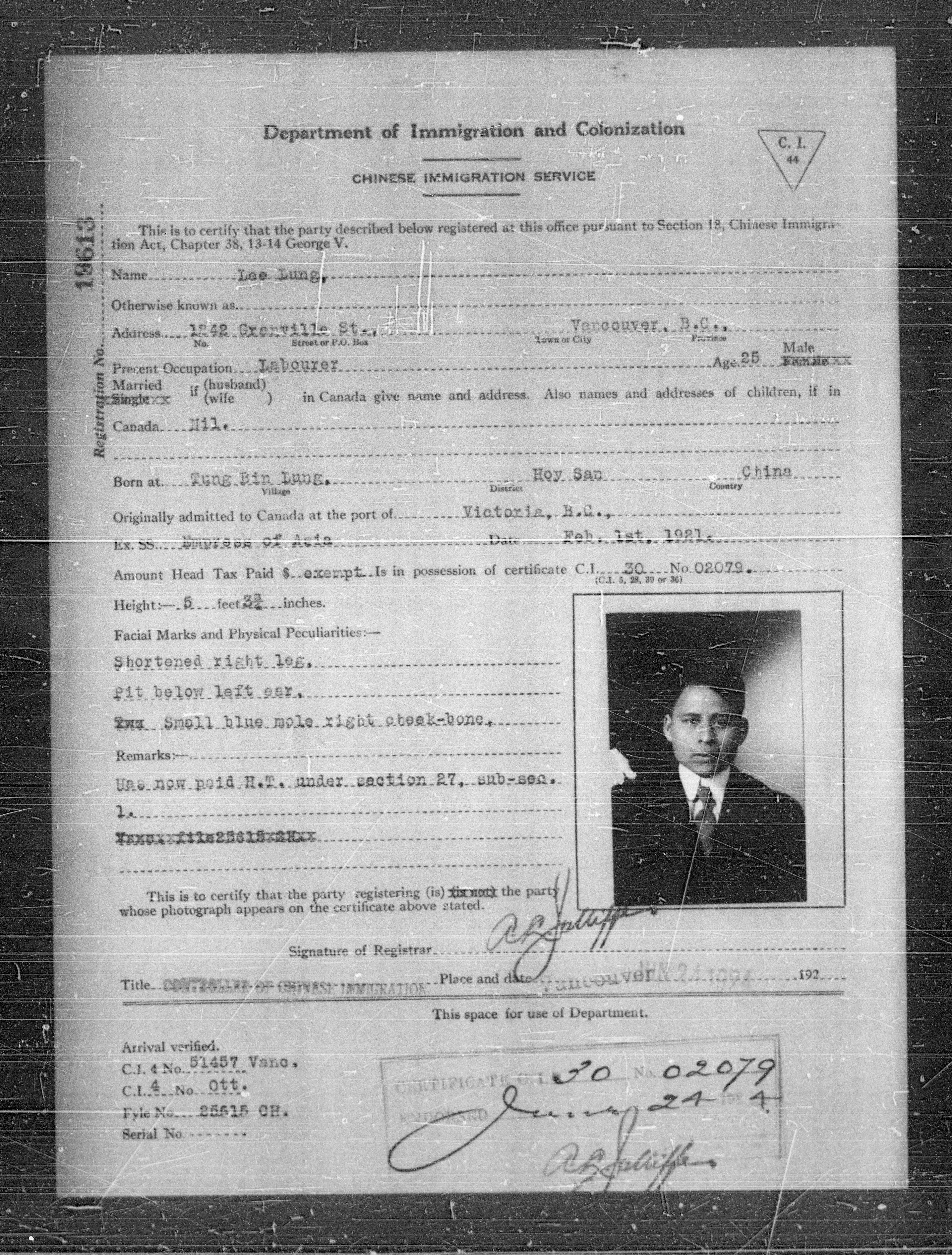 Chinese C.I. 44 forms and index cards of the Immigration Program (1923-1946) - T-16171