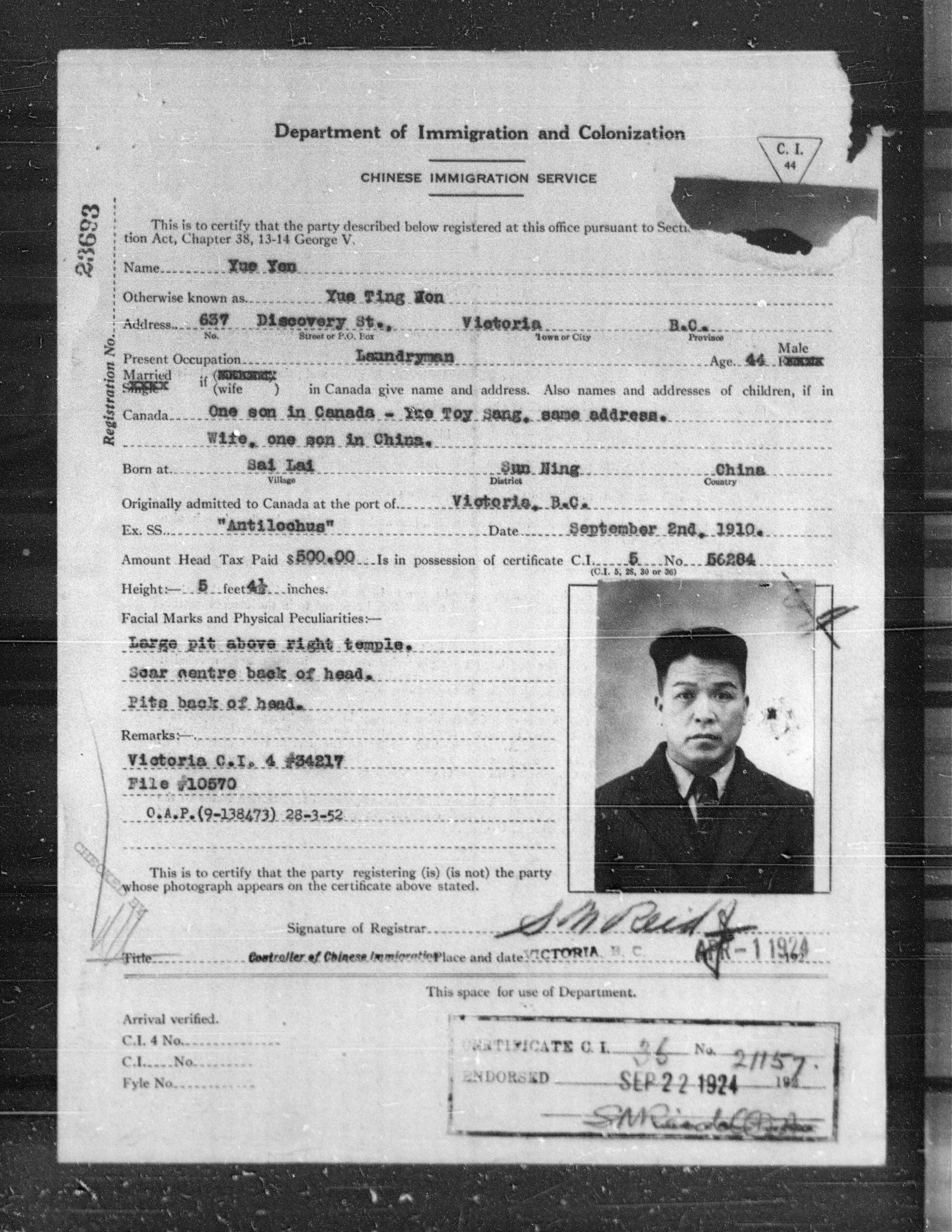 Chinese C.I. 44 forms and index cards of the Immigration Program (1923-1946) - T-16172