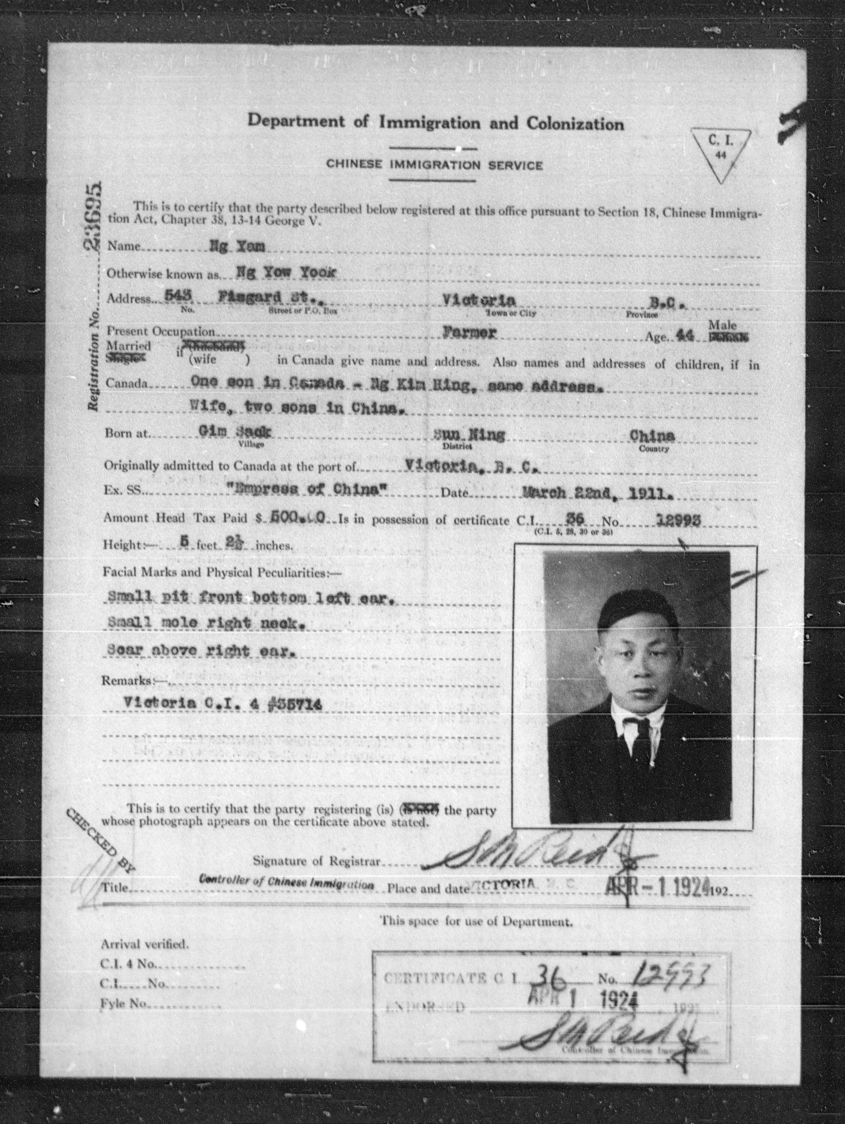 Chinese C.I. 44 forms and index cards of the Immigration Program (1923-1946) - T-16172