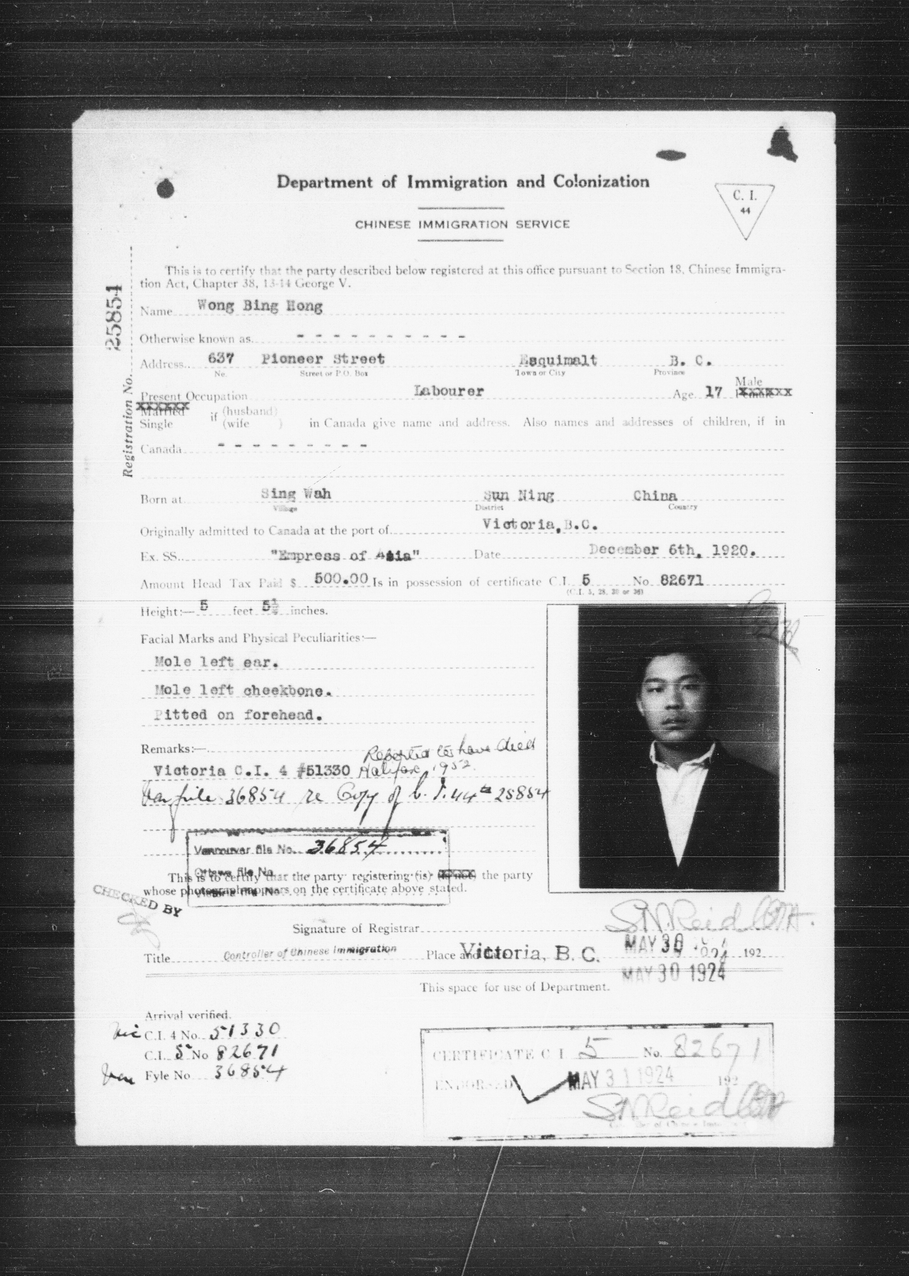 Chinese C.I. 44 forms and index cards of the Immigration Program (1923-1946) - T-16174