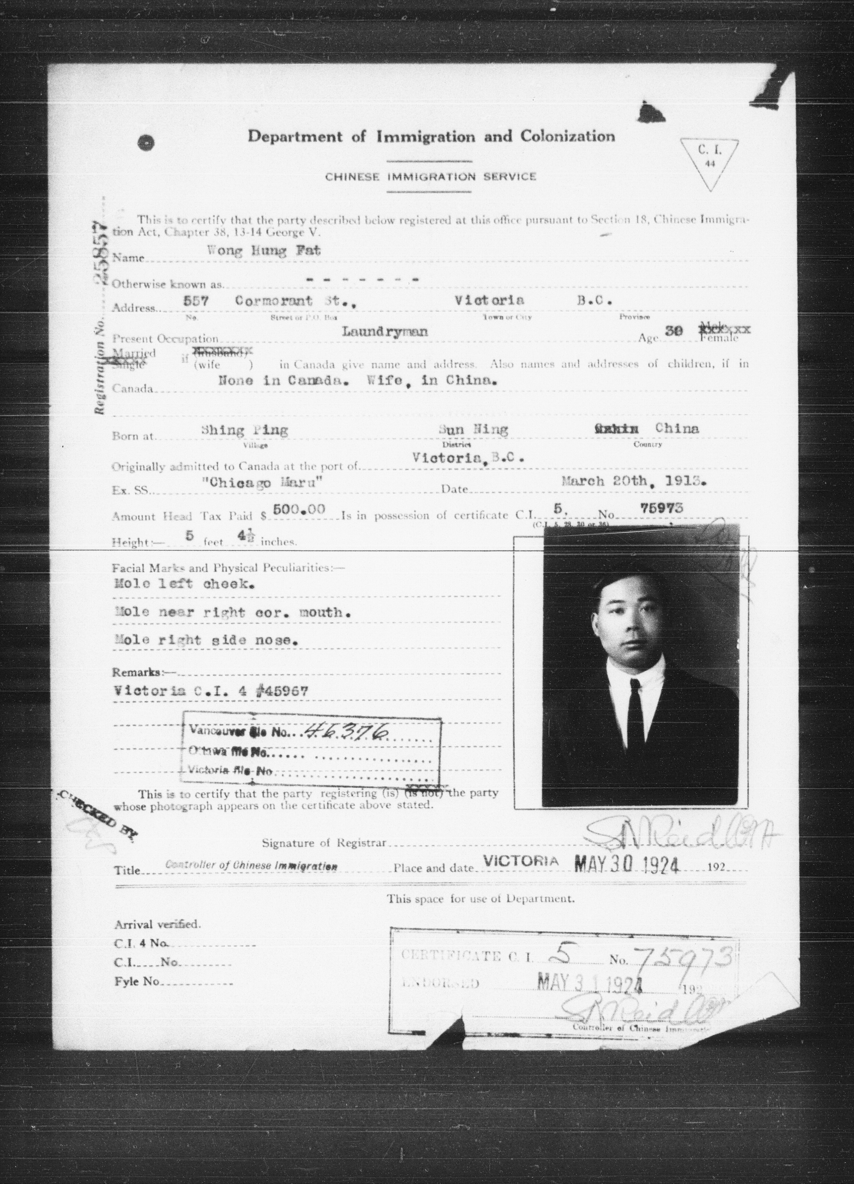 Chinese C.I. 44 forms and index cards of the Immigration Program (1923-1946) - T-16174