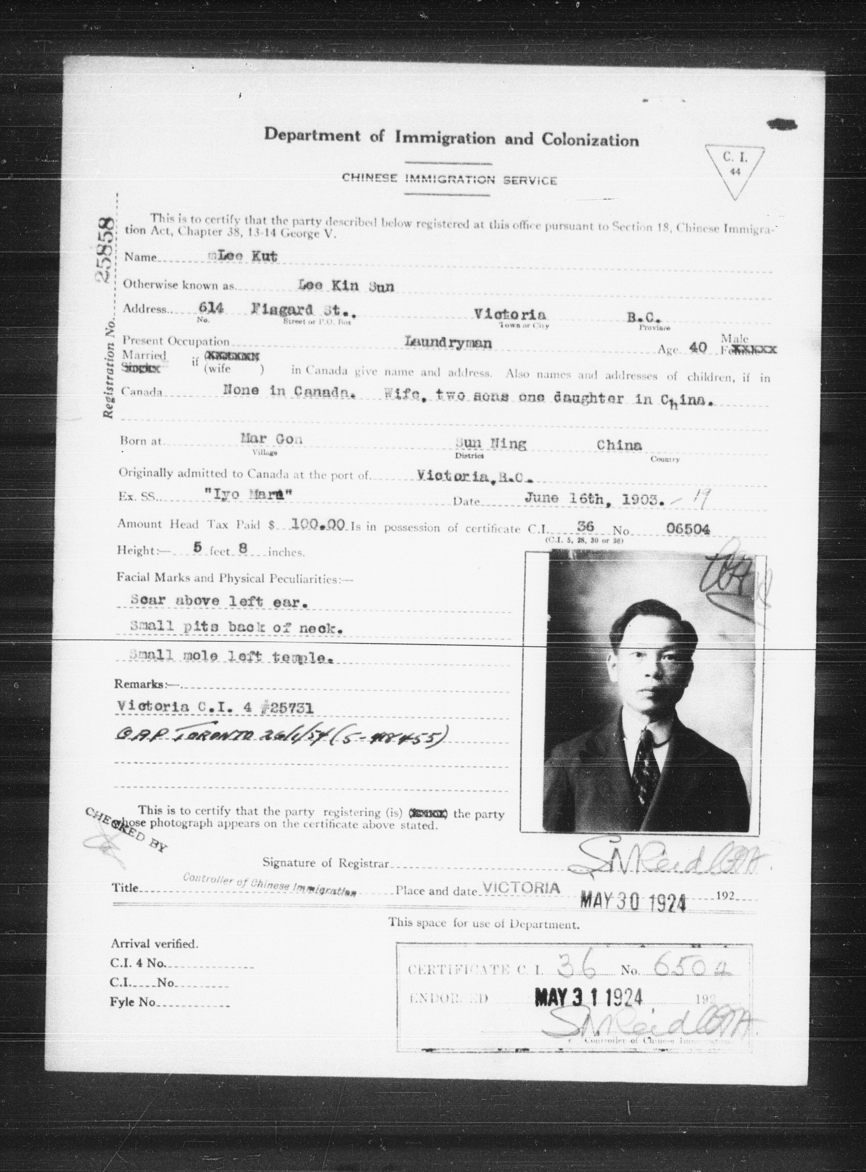 Chinese C.I. 44 forms and index cards of the Immigration Program (1923-1946) - T-16174