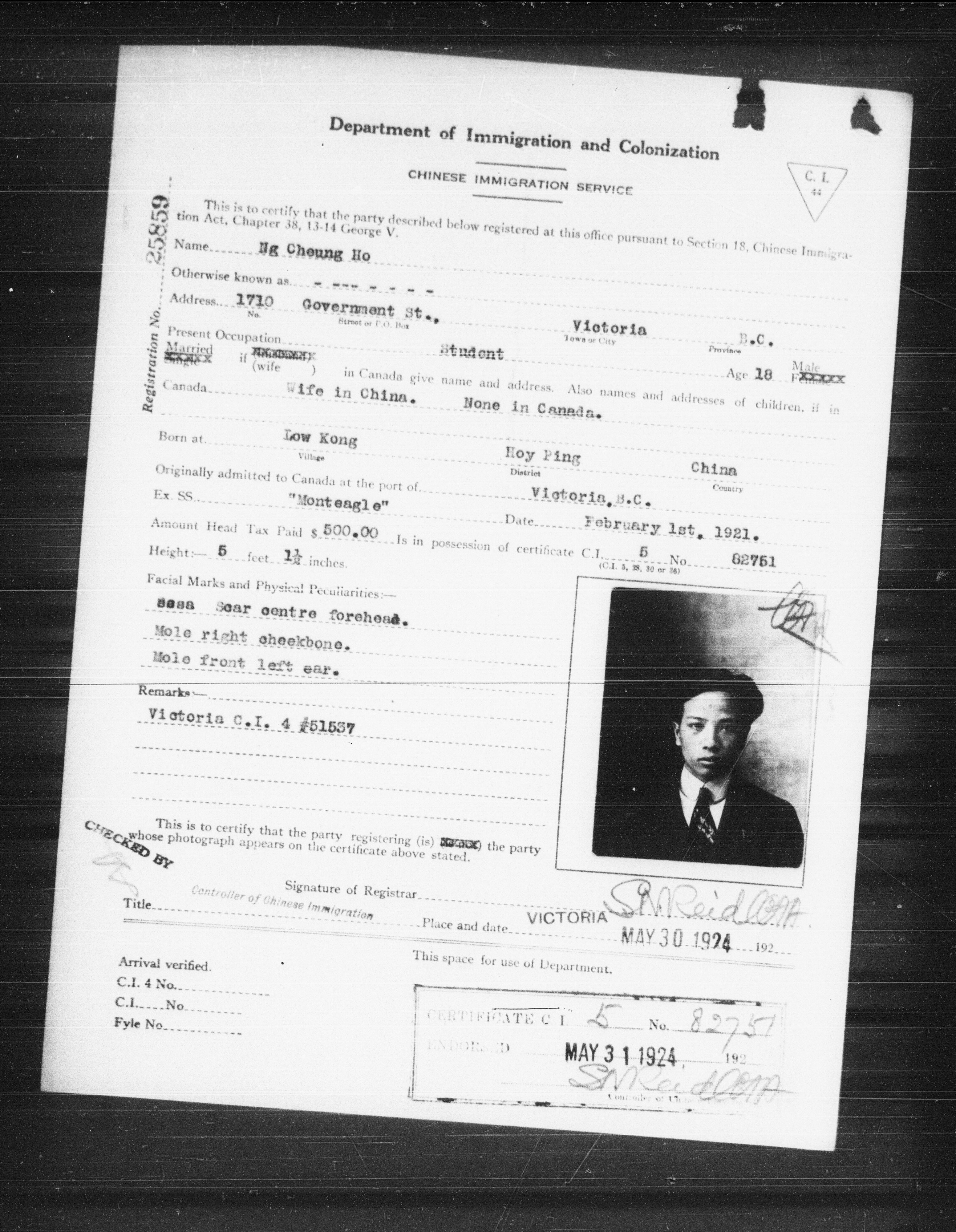 Chinese C.I. 44 forms and index cards of the Immigration Program (1923-1946) - T-16174