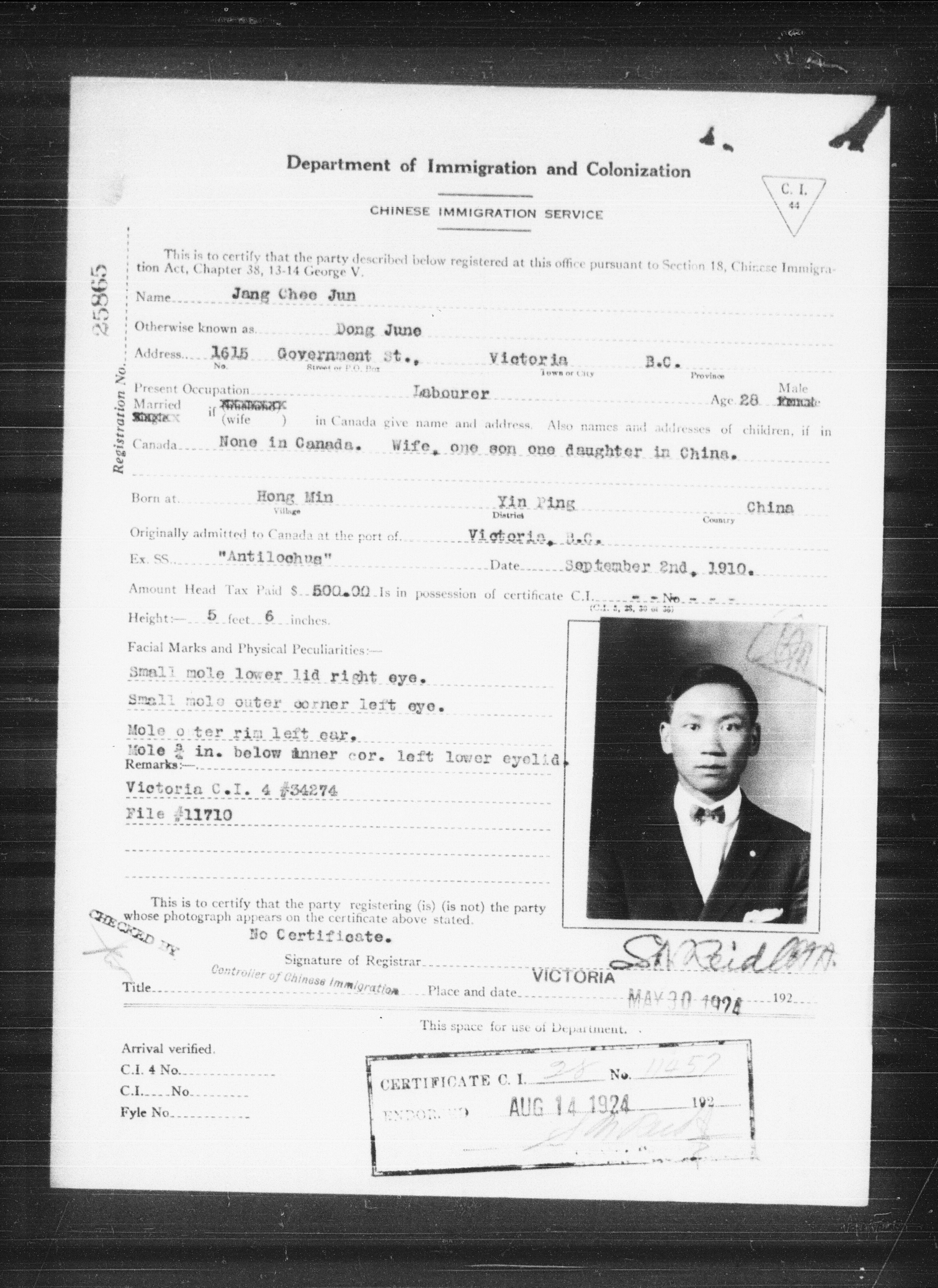 Chinese C.I. 44 forms and index cards of the Immigration Program (1923-1946) - T-16174