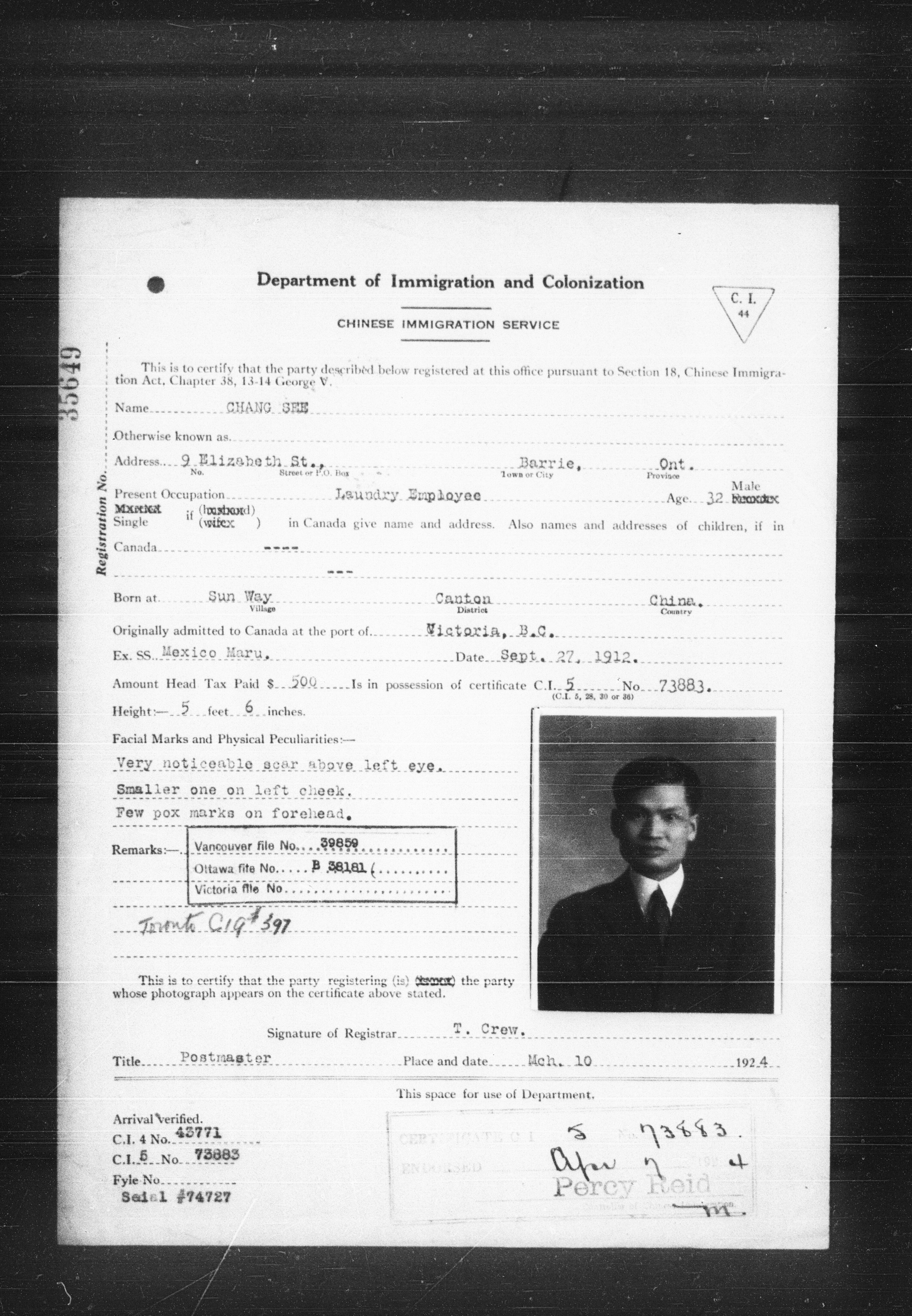 Chinese C.I. 44 forms and index cards of the Immigration Program (1923-1946) - T-16177