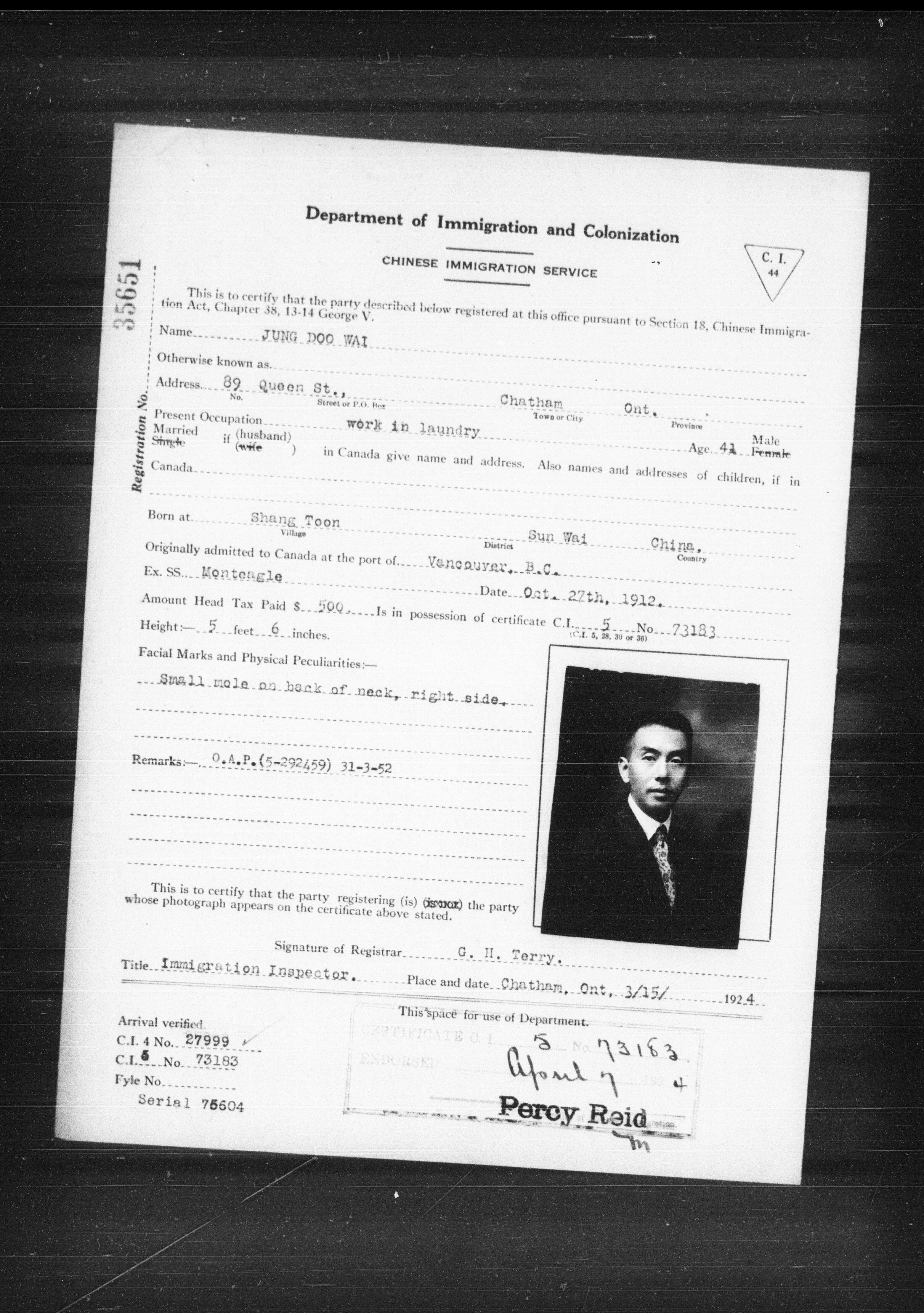 Chinese C.I. 44 forms and index cards of the Immigration Program (1923-1946) - T-16177