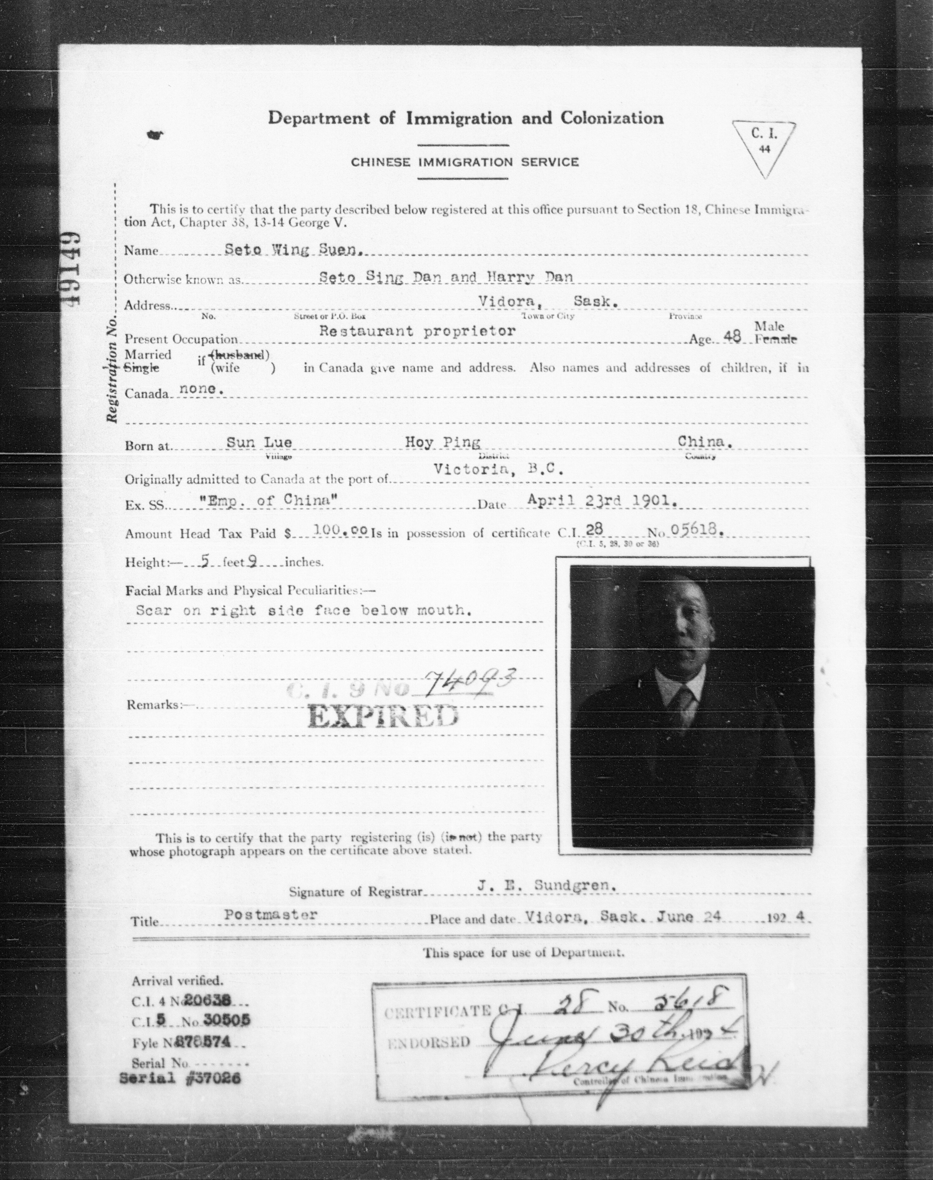 Chinese C.I. 44 forms and index cards of the Immigration Program (1923-1946) - T-16182