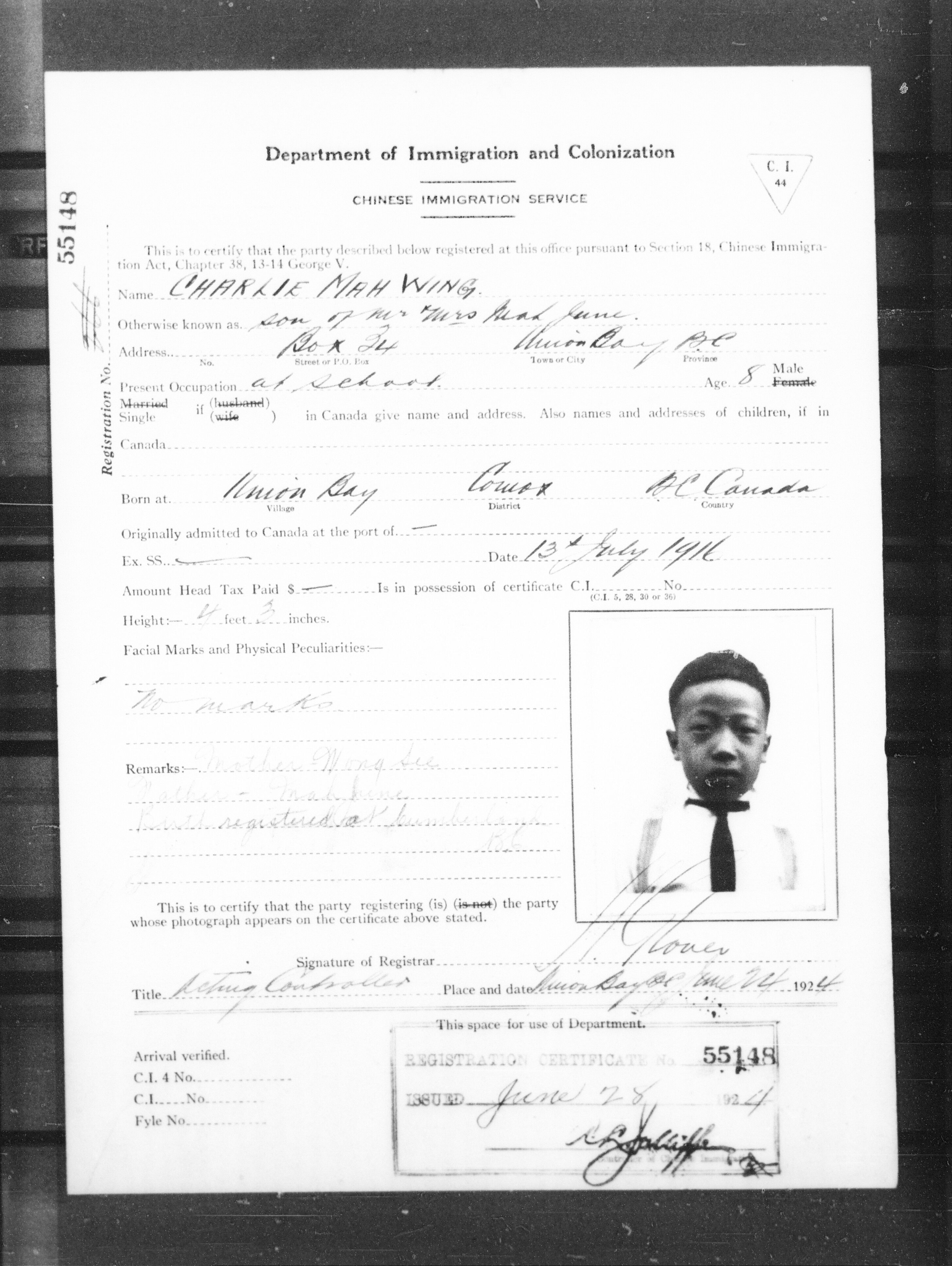 Chinese C.I. 44 forms and index cards of the Immigration Program (1923-1946) - T-16183