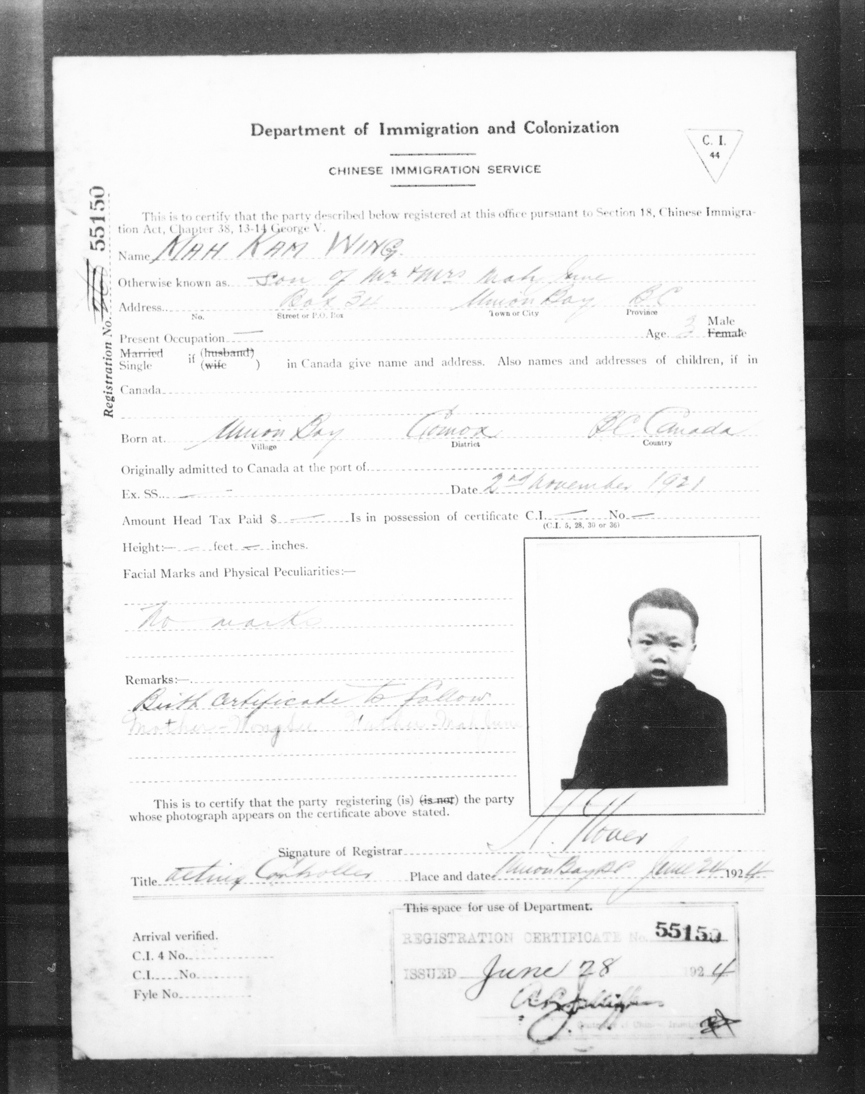 Chinese C.I. 44 forms and index cards of the Immigration Program (1923-1946) - T-16183