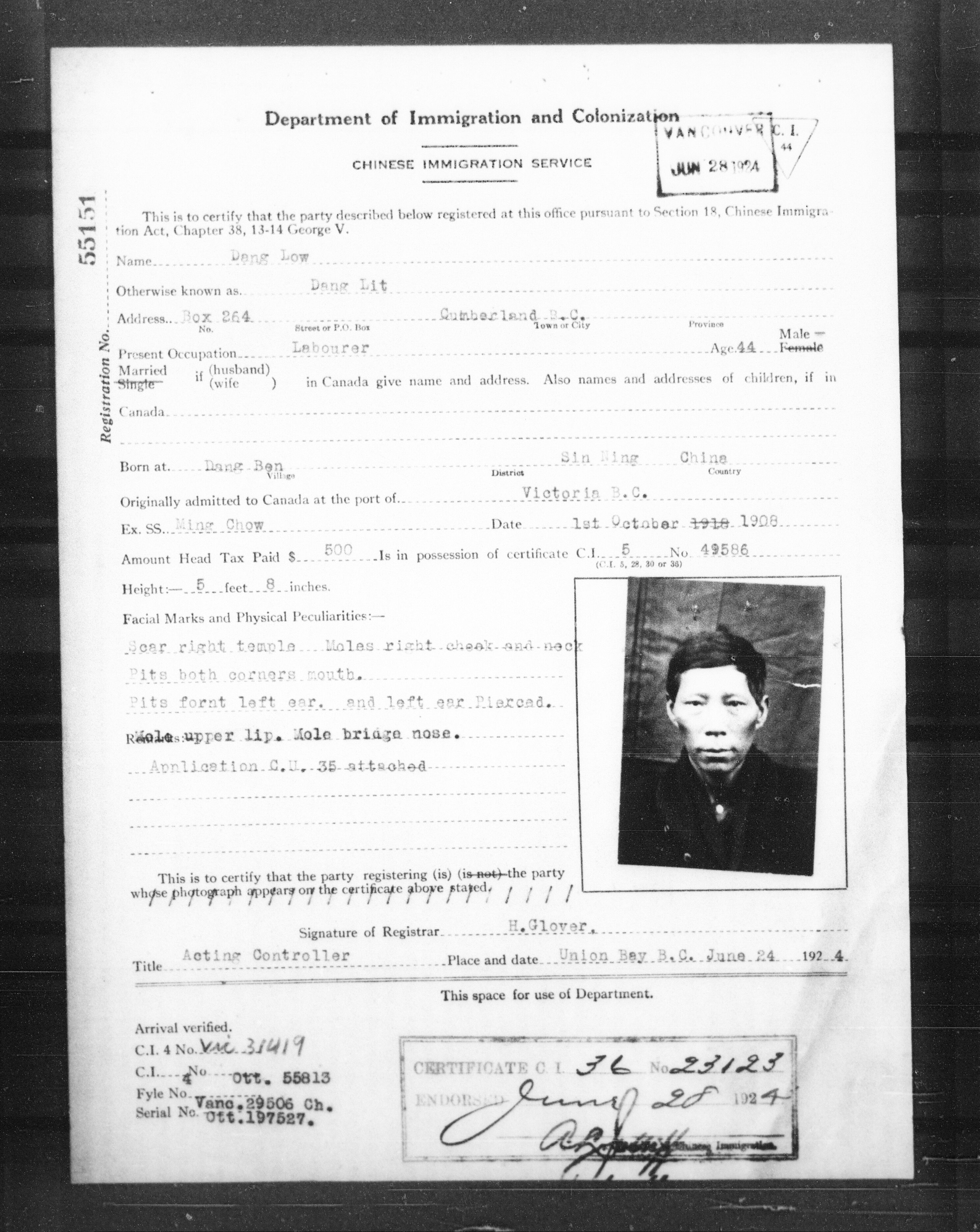 Chinese C.I. 44 forms and index cards of the Immigration Program (1923-1946) - T-16183