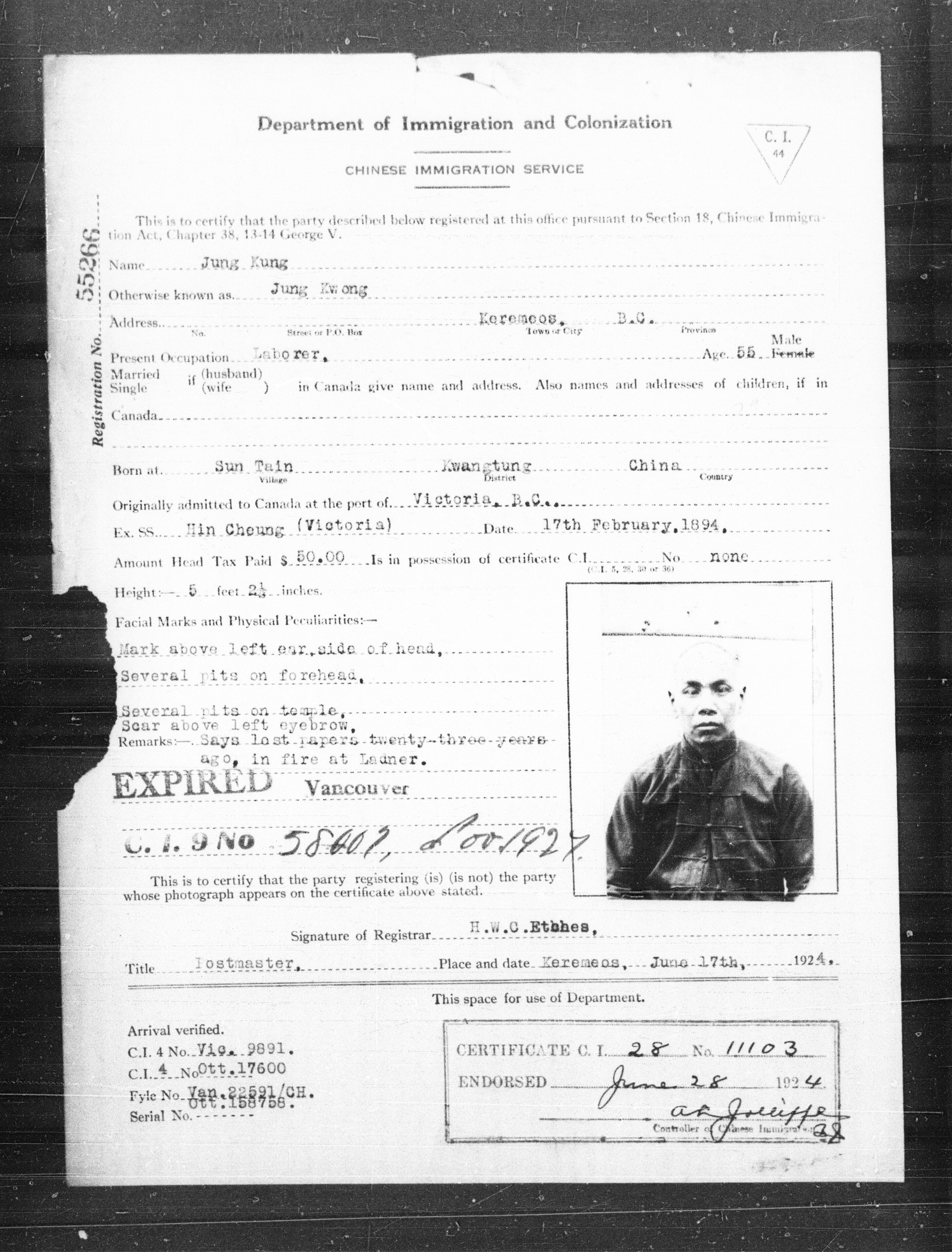 Chinese C.I. 44 forms and index cards of the Immigration Program (1923-1946) - T-16184
