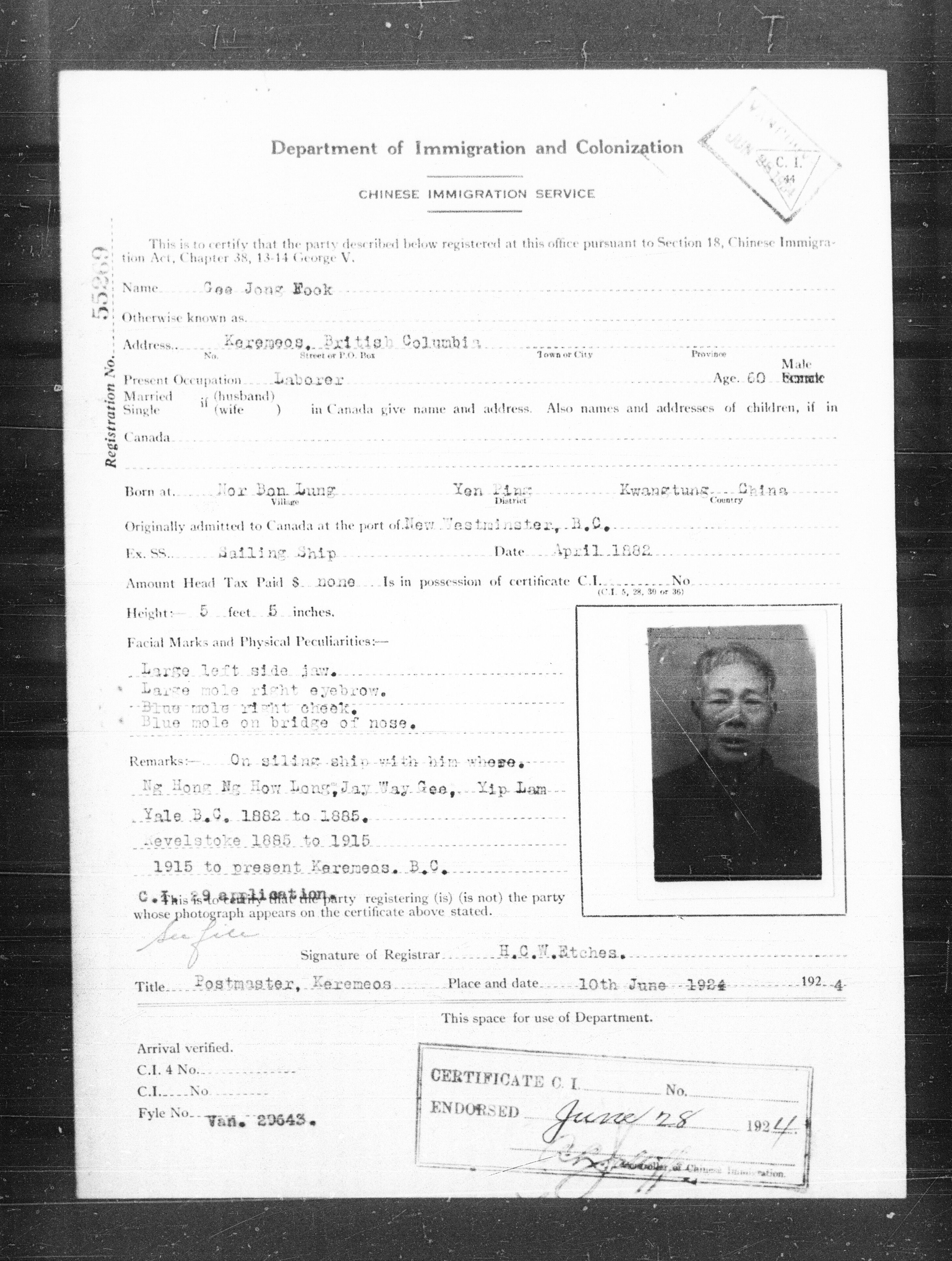 Chinese C.I. 44 forms and index cards of the Immigration Program (1923-1946) - T-16184