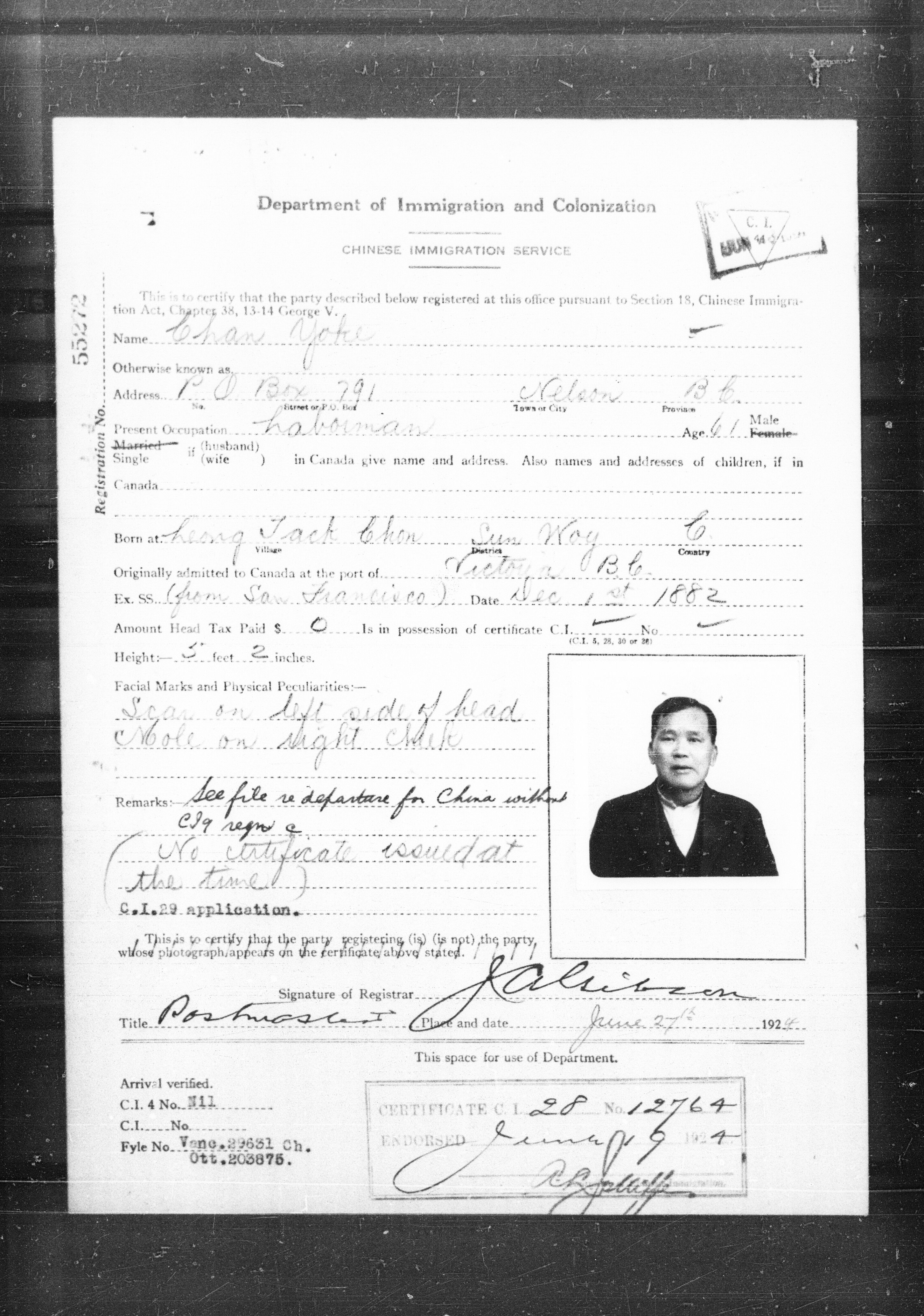 Chinese C.I. 44 forms and index cards of the Immigration Program (1923-1946) - T-16184