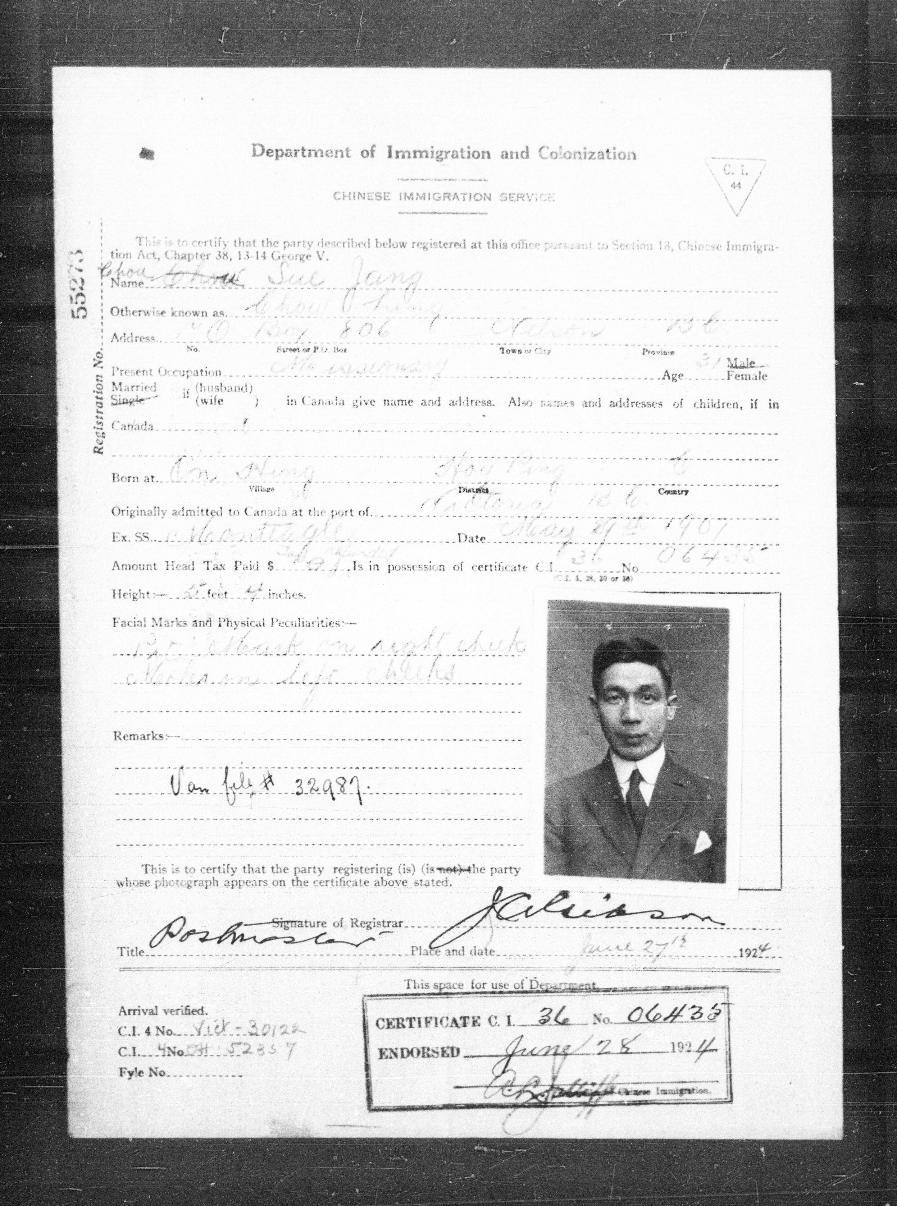 Chinese C.I. 44 forms and index cards of the Immigration Program (1923-1946) - T-16184