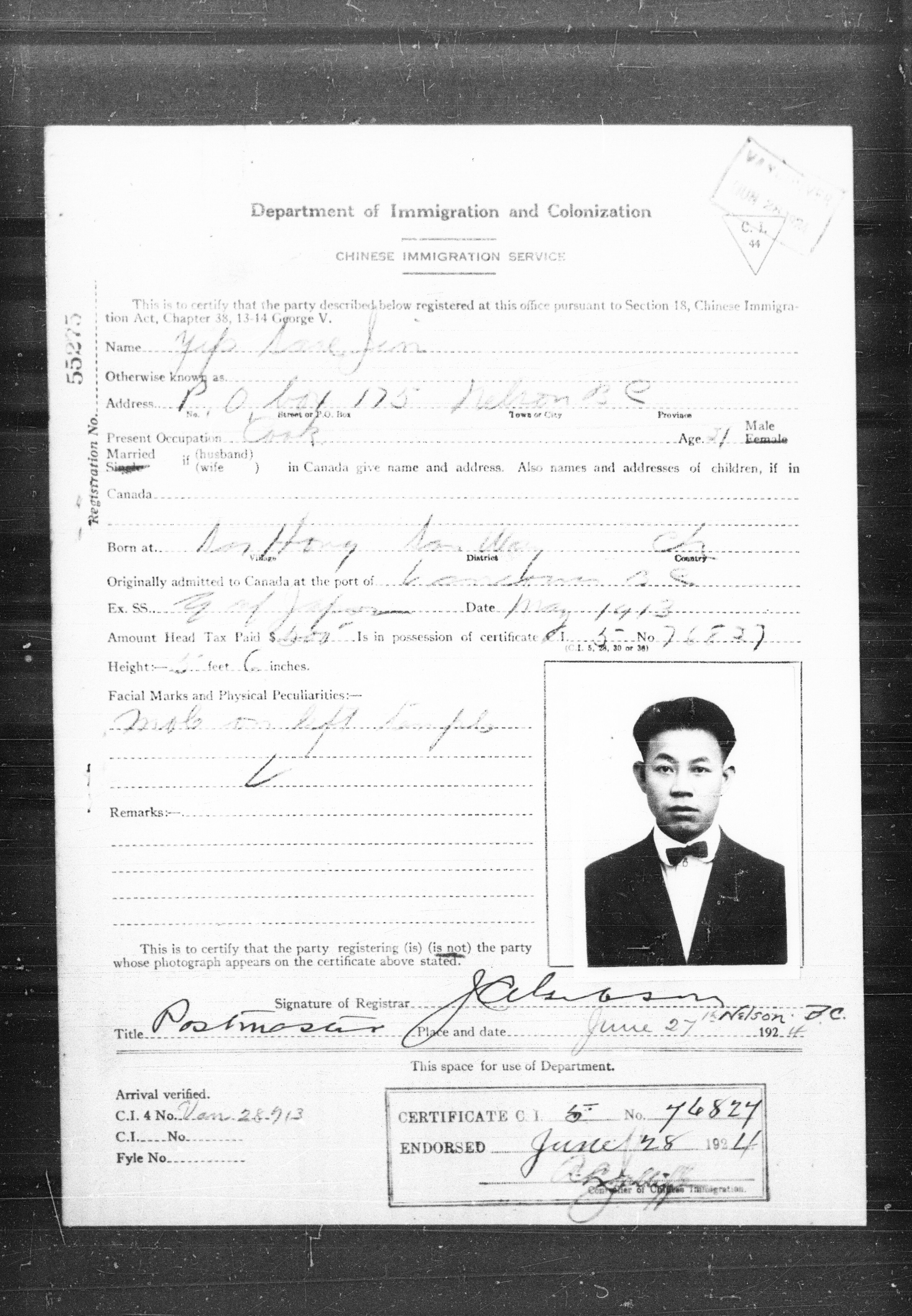 Chinese C.I. 44 forms and index cards of the Immigration Program (1923-1946) - T-16184