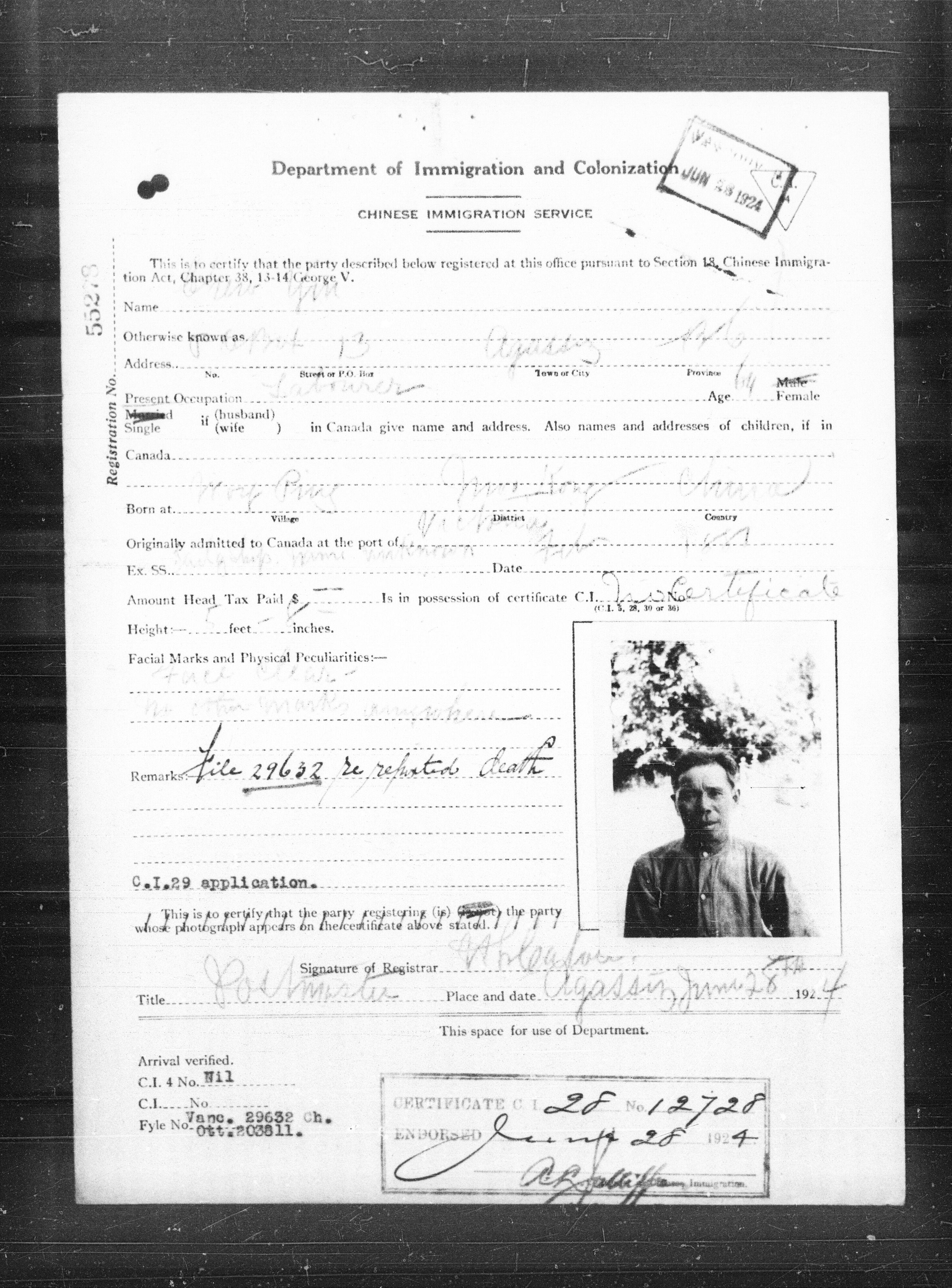 Chinese C.I. 44 forms and index cards of the Immigration Program (1923-1946) - T-16184