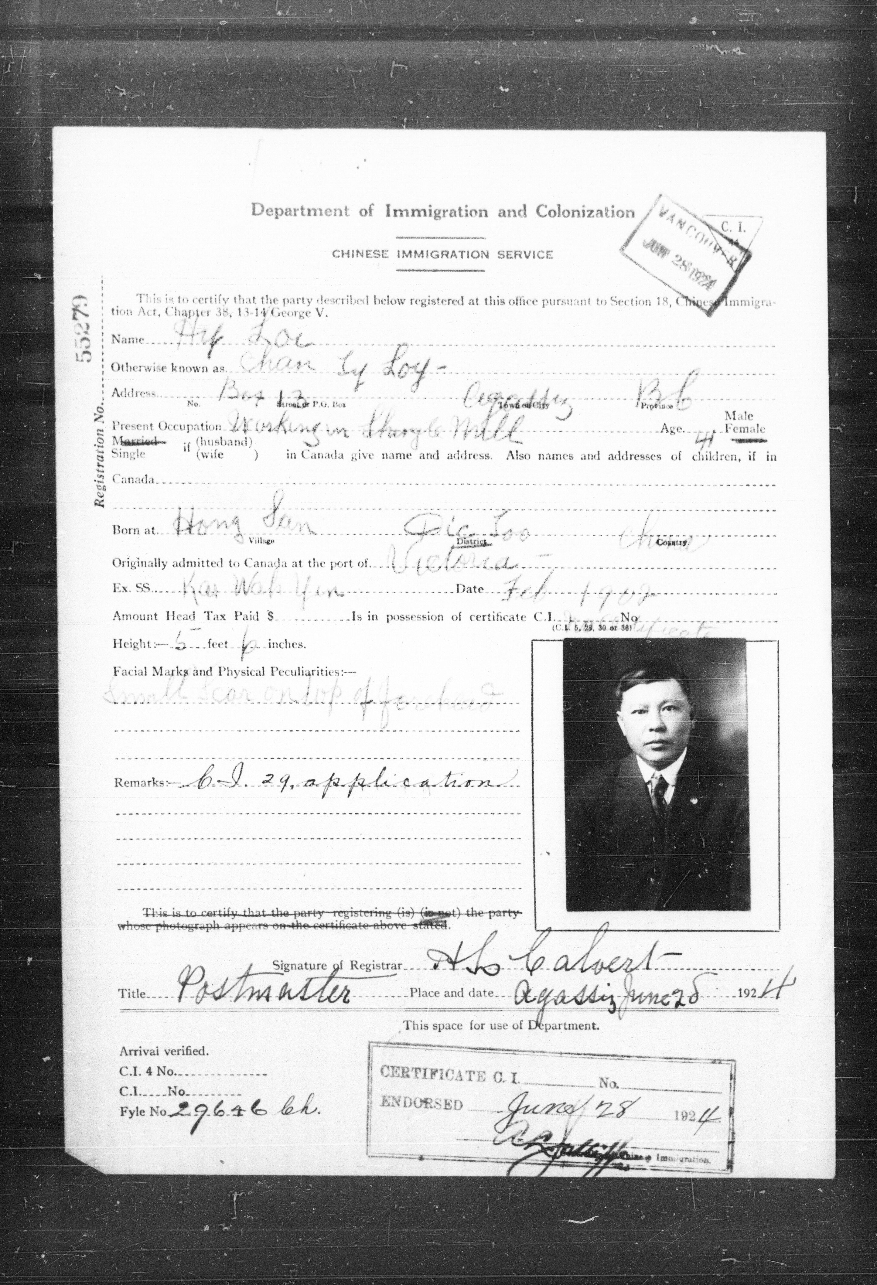 Chinese C.I. 44 forms and index cards of the Immigration Program (1923-1946) - T-16184