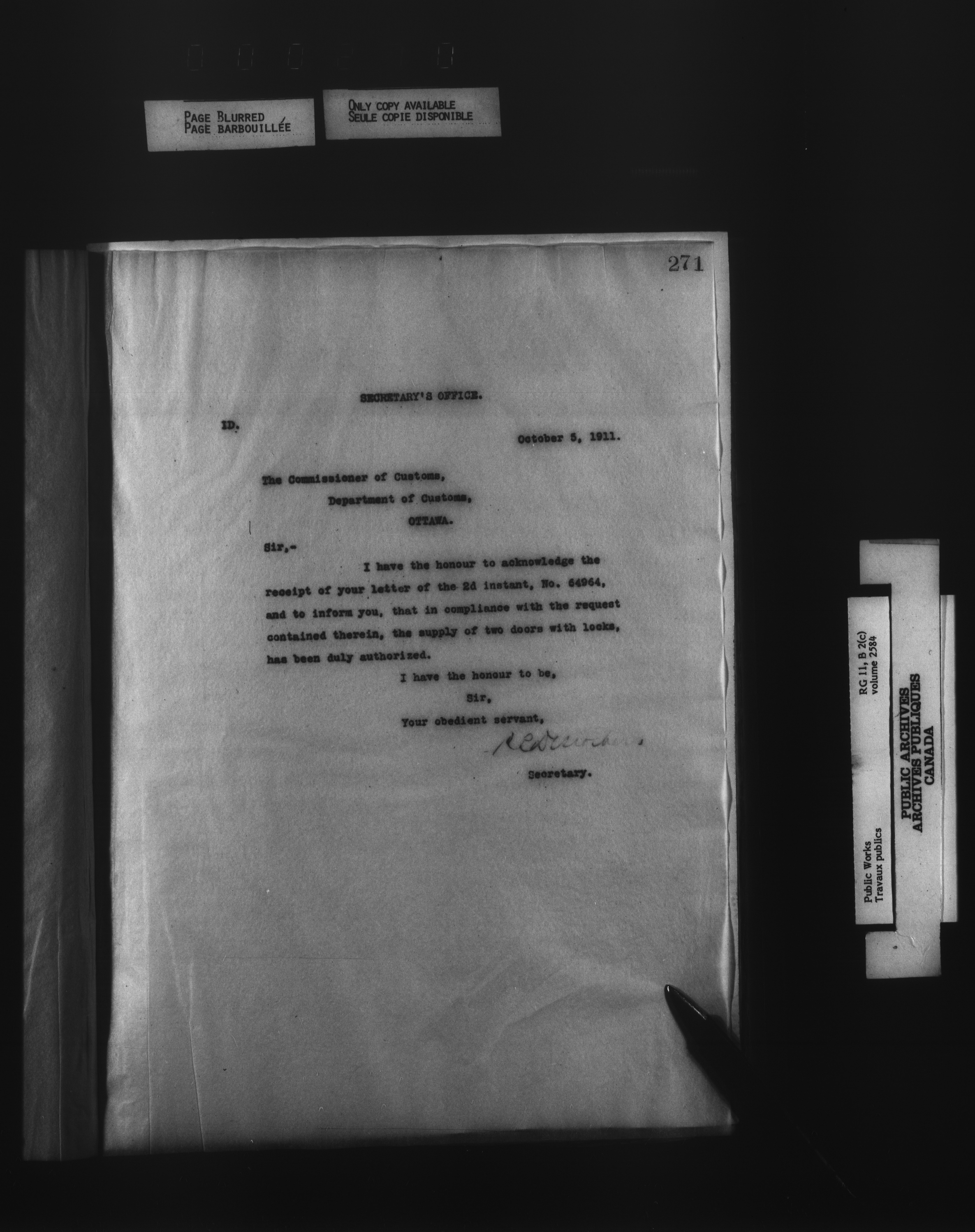 Department of Public Works : Outgoing Numbered Correspondence, 1879-1912 - 1626