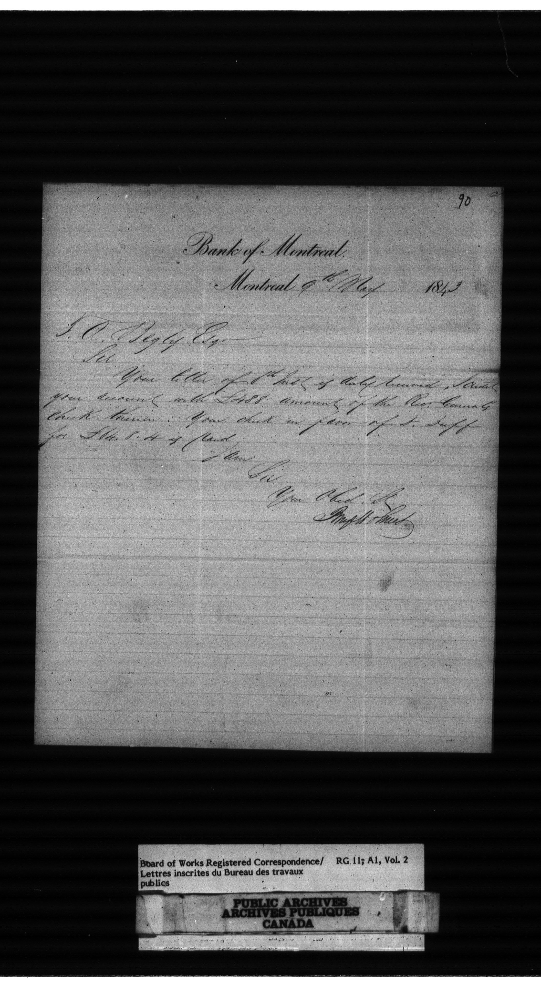 Department of Public Works, Board of Works records, official correspondence : Registered correspondence, 1842-1860 : T-1641