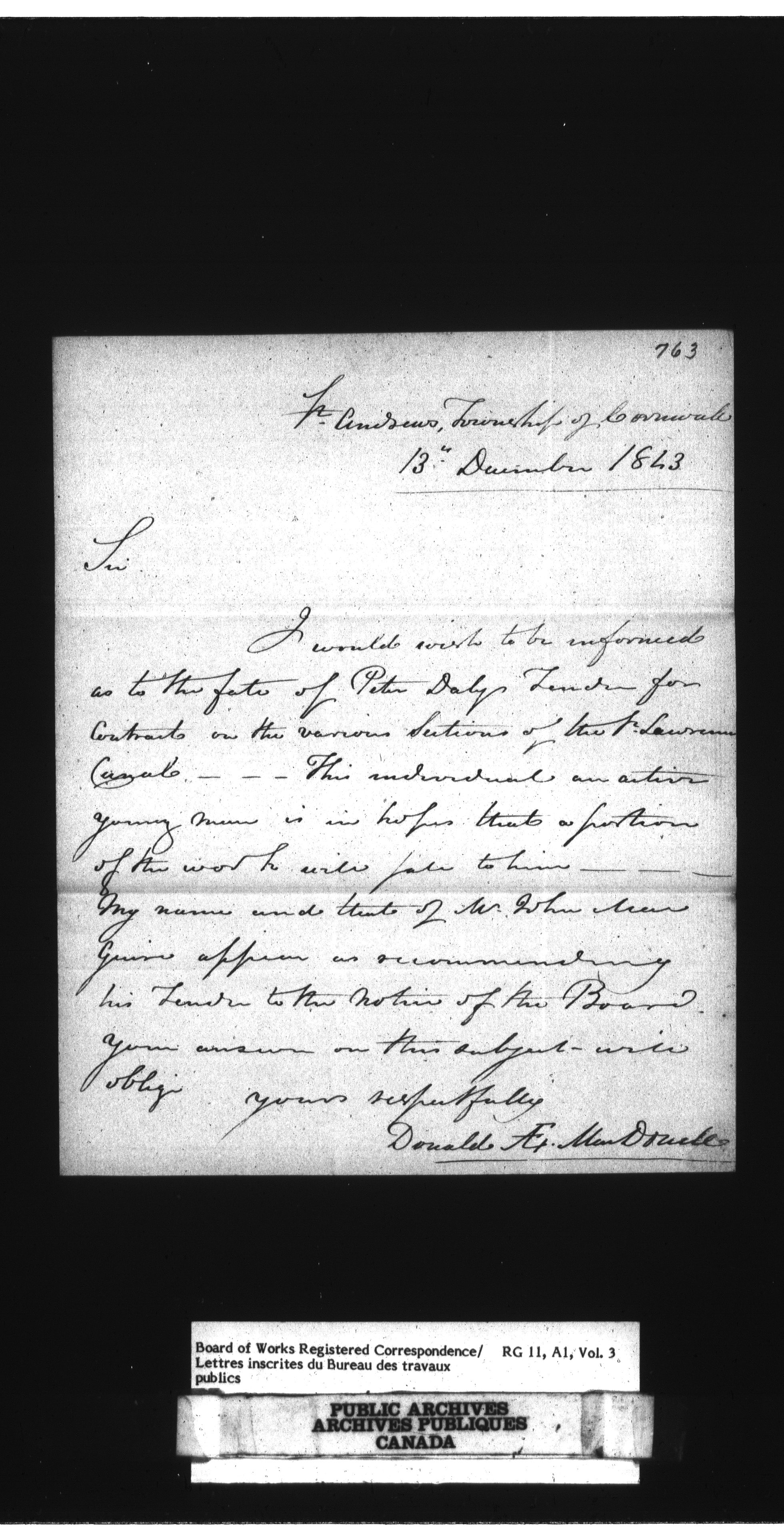 Department of Public Works, Board of Works records, official correspondence : Registered correspondence, 1842-1860 : T-1643