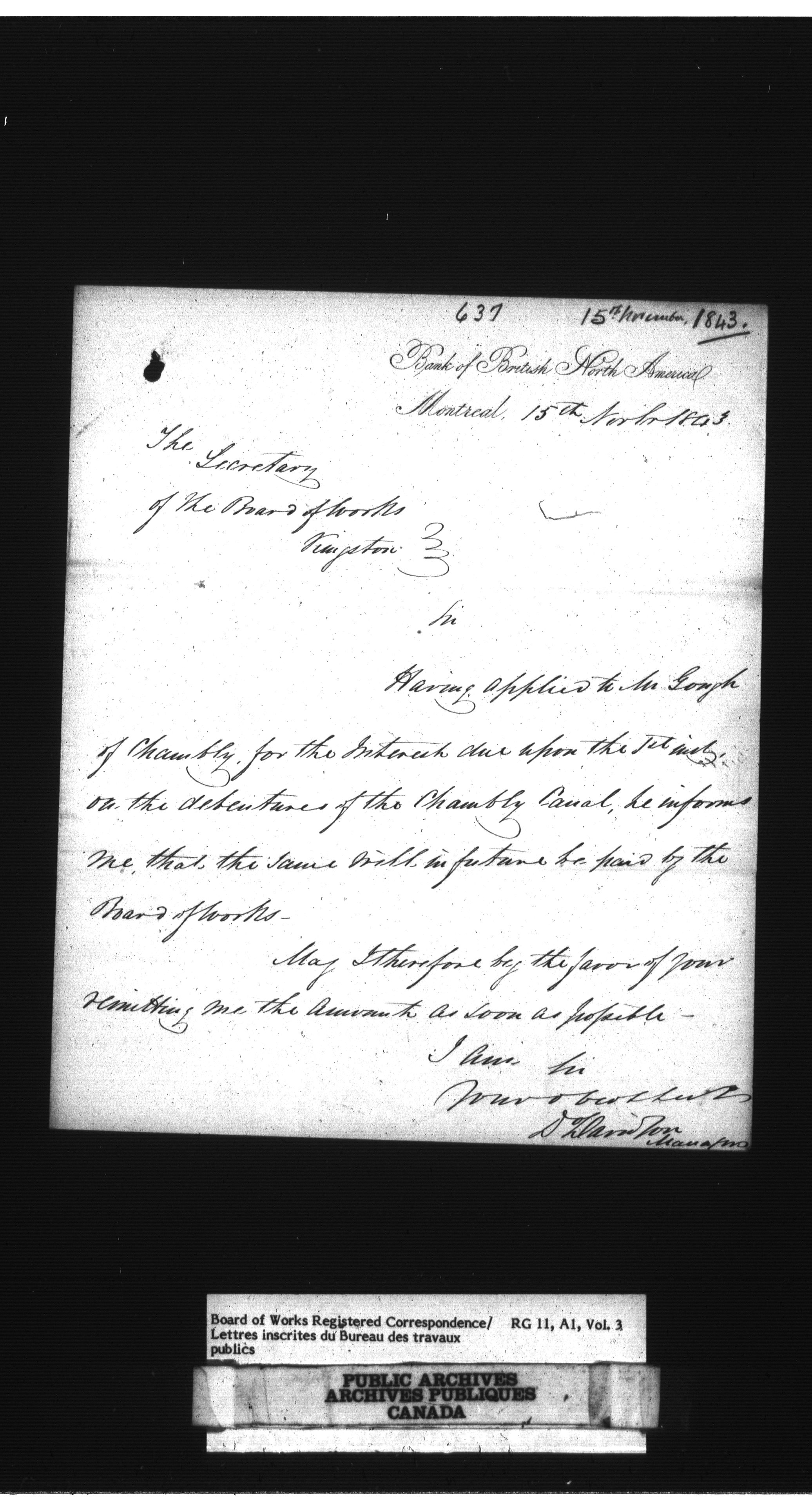 Department of Public Works, Board of Works : Official registered correspondence, 1842-1860 - 1643