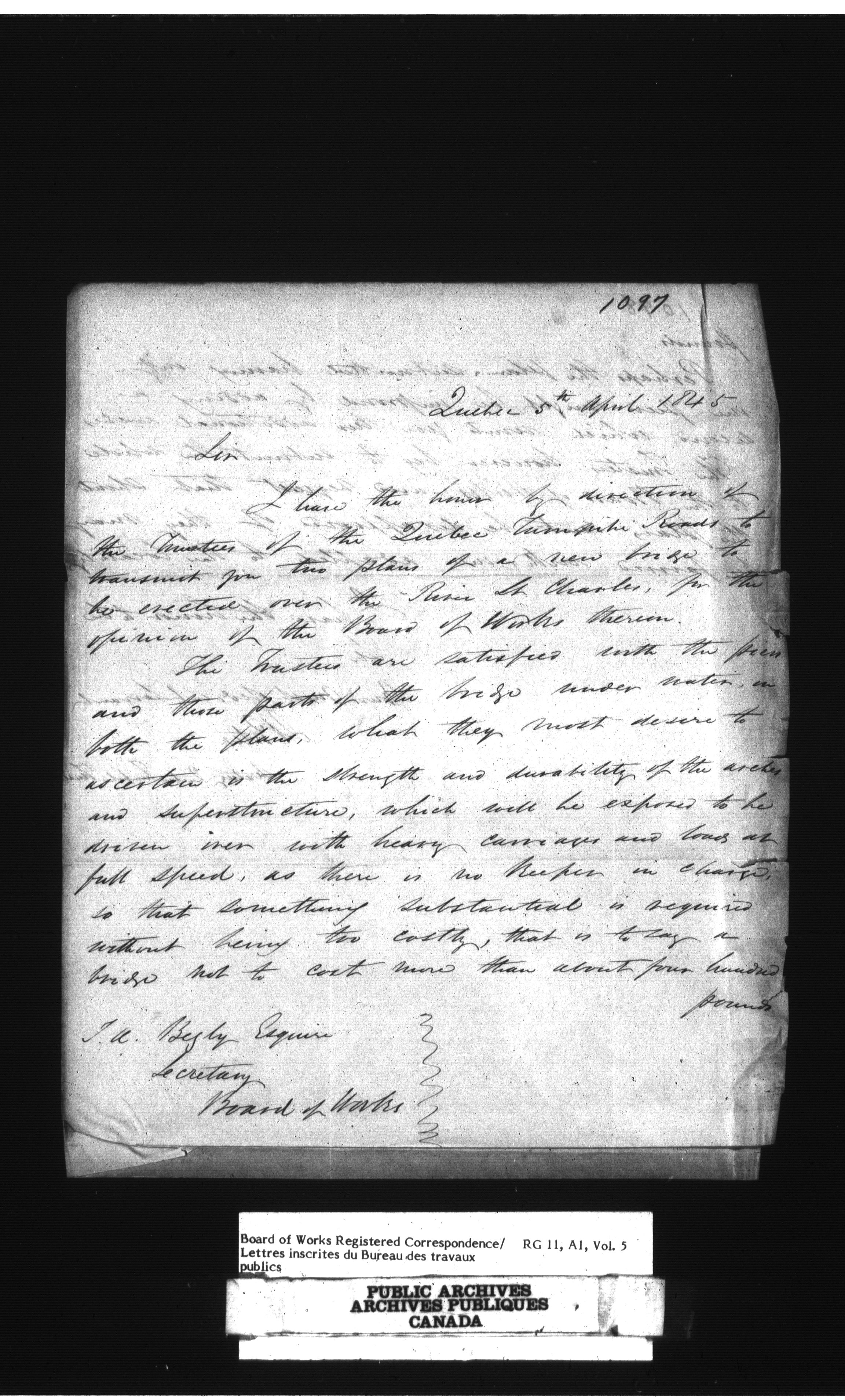 Department of Public Works, Board of Works records, official correspondence : Registered correspondence, 1842-1860 : T-1644